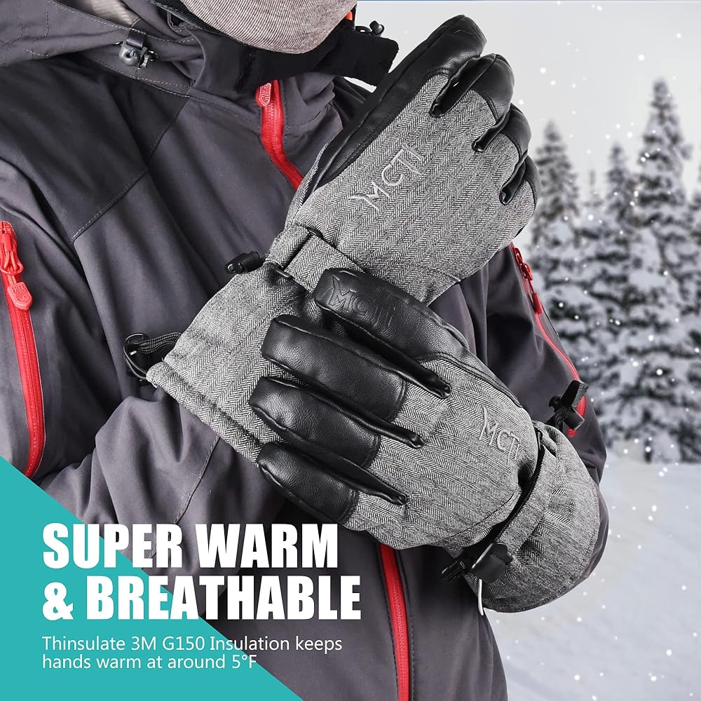 MCTI التزلج قفازات شتاء مضاد للماء الثلج الثلج دافئ 3M Thinsulate PU جلد قفازات البرد