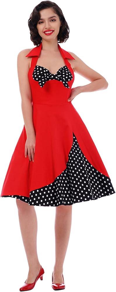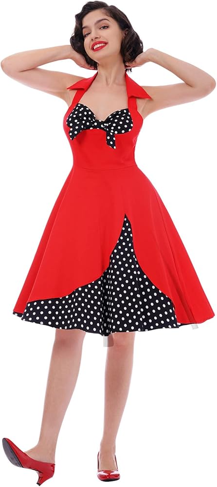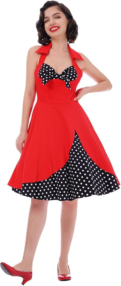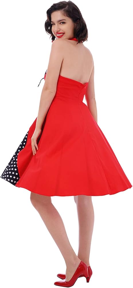 التصميم: فستان كوكتيل روكابيلي بنمط أودري هيبورن للنساء، بسيط وأنيق، يمنحك مظهرًا كلاسيكيًا من الخمسينيات. نمطين للاختيار. فستان بدون أكمام برقبة على شكل قلب، صدرية علوية مكشكشة عصرية، رقبة رسن مع أشرطة مربوطة ذاتيًا، يمكن أن يظهر صورتك الظلية الأنثوية الساحرة. طباعة منقوشة بالكامل، وهي عنصر كلاسيكي في الخمسينيات، تعزز جمالك ورشاقتك بشكل عام بين الناس. فستان متأرجح مثير بأشرطة سباغيتي مكشكشة، يمكن أن يُظهر عظمة الترقوة الساحرة بشكل مثالي. منقوشة أو نقطة البولكا المتاحة. يضيف الخصر الإمبراطوري والحاشية المتوهجة شعورًا عتيقًا للفستان بأكمله. طراز مثير بدون ظهر مع سحاب غير مرئي في الخلف، مريح وسهل الارتداء والخلع. يمكن تنسيقه مع تنورة داخلية أو تنورة تحتية للحصول على تأثير منتفخ ورقيق ليجعلك أكثر رشاقة. بعد ارتدائه، ستصبحين سيدة أنيقة وساحرة في الحفلة بسبب هذا الفستان.