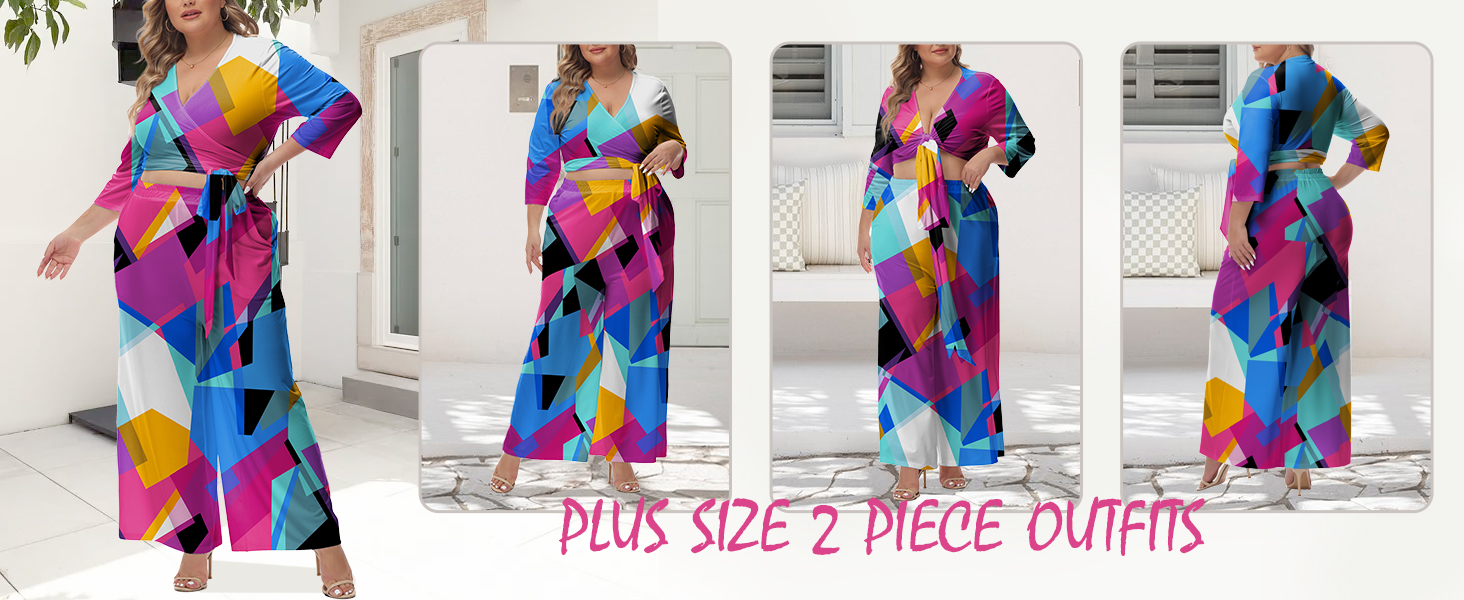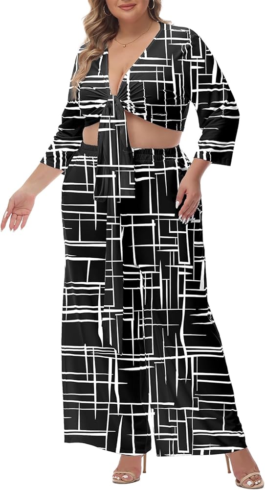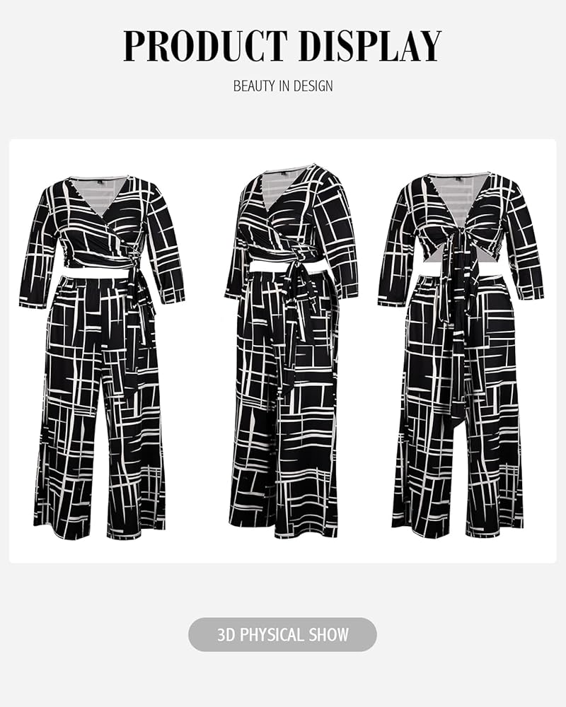 ميزات فريدة: S=US 4، M=US 6، L=US 8-10، XL=US 12,1XL=US 14,1XL=US 14,2XL=US 16,3XL=US 18,4XL=US 20 / ملابس من قطعتين للنساء 2023 / مجموعات بلوزات وسراويل شبه رسمية للنساء / بلوزة قصيرة برقبة على شكل V / 3/4 كم / بنطال مرن عالي الخصر واسع الساق / مجموعة ملابس محبوكة بمقاس كبير / بنطلون طويل كامل / جيبان جانبيان بنطال طويل / صالة بذلة رياضية / طباعة فريدة متعددة الألوان / مقاس فضفاض / أنيق وجذاب وجذاب وغير رسمي / بدلة لربيع وخريف وشتاء