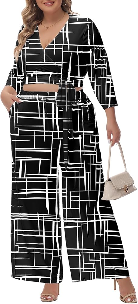 العصرية 2 قطعة التفاف أعلى ومجموعات بانت واسعة: أسود 2 قطعة ملابس للنساء / أوراق الورد الأحمر المحاصيل أعلى مجموعات بنطلون طويل للنساء / الأزهار الأبيض لطيف 3/4 كم قمم السراويل بالازو ملابس للنساء / الأزهار الخضراء بالإضافة إلى حجم بذلات بذلة للنساء / ملابس خريف كاجوال متعددة الألوان للنساء / ملابس من قطعتين جغرافية باللون الأسود والأبيض للنساء / ملابس نادي فضفاضة للنساء / ملابس عمل عادية للنساء / مجموعات صالة أنيقة للنساء / ملابس مدرسية أنيقة للنساء