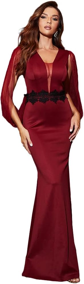 فستان Lin Lin Q طويل للنساء برقبة طويلة على شكل حورية البحر، فستان حفلات العودة للوطن وأكمام طويلة شبكي