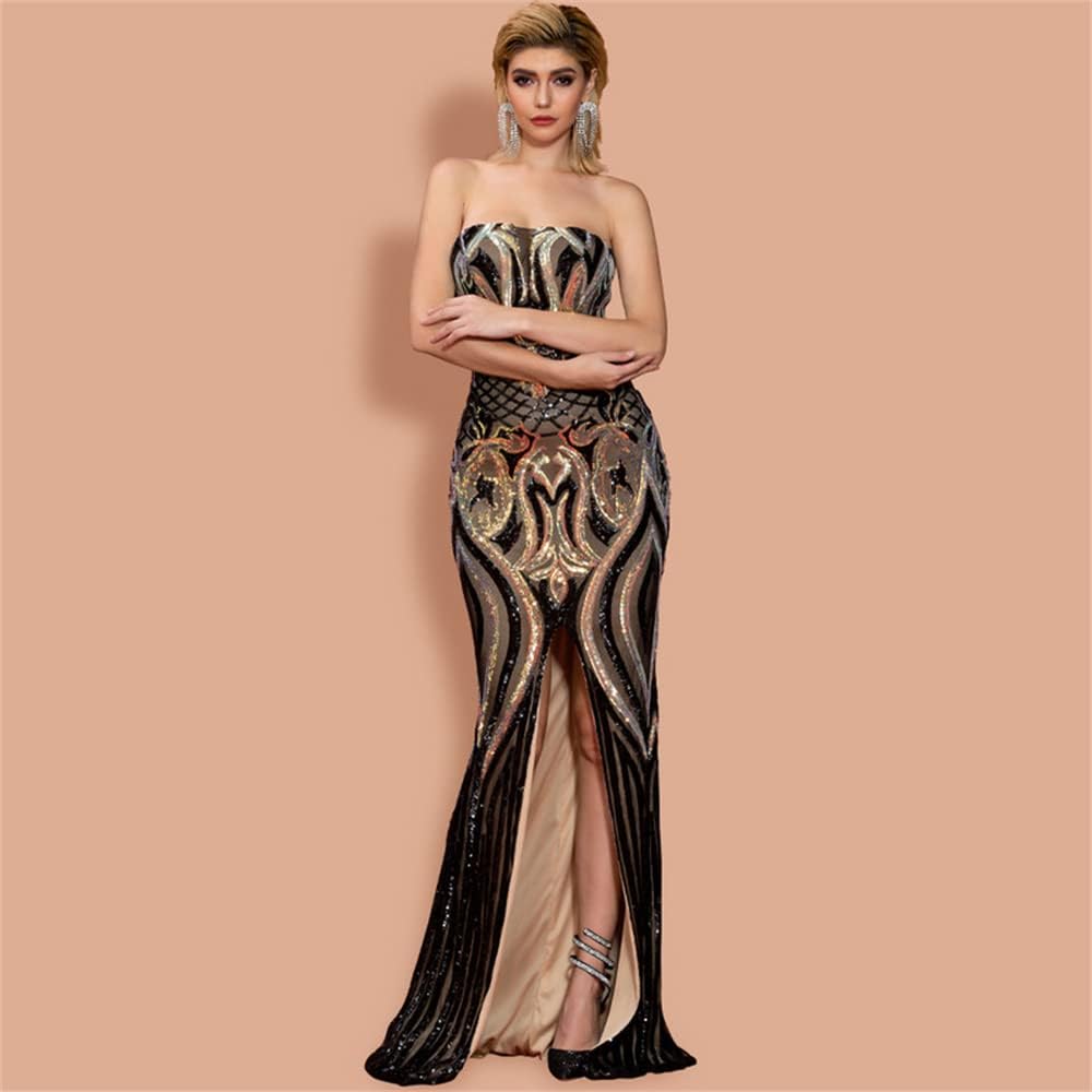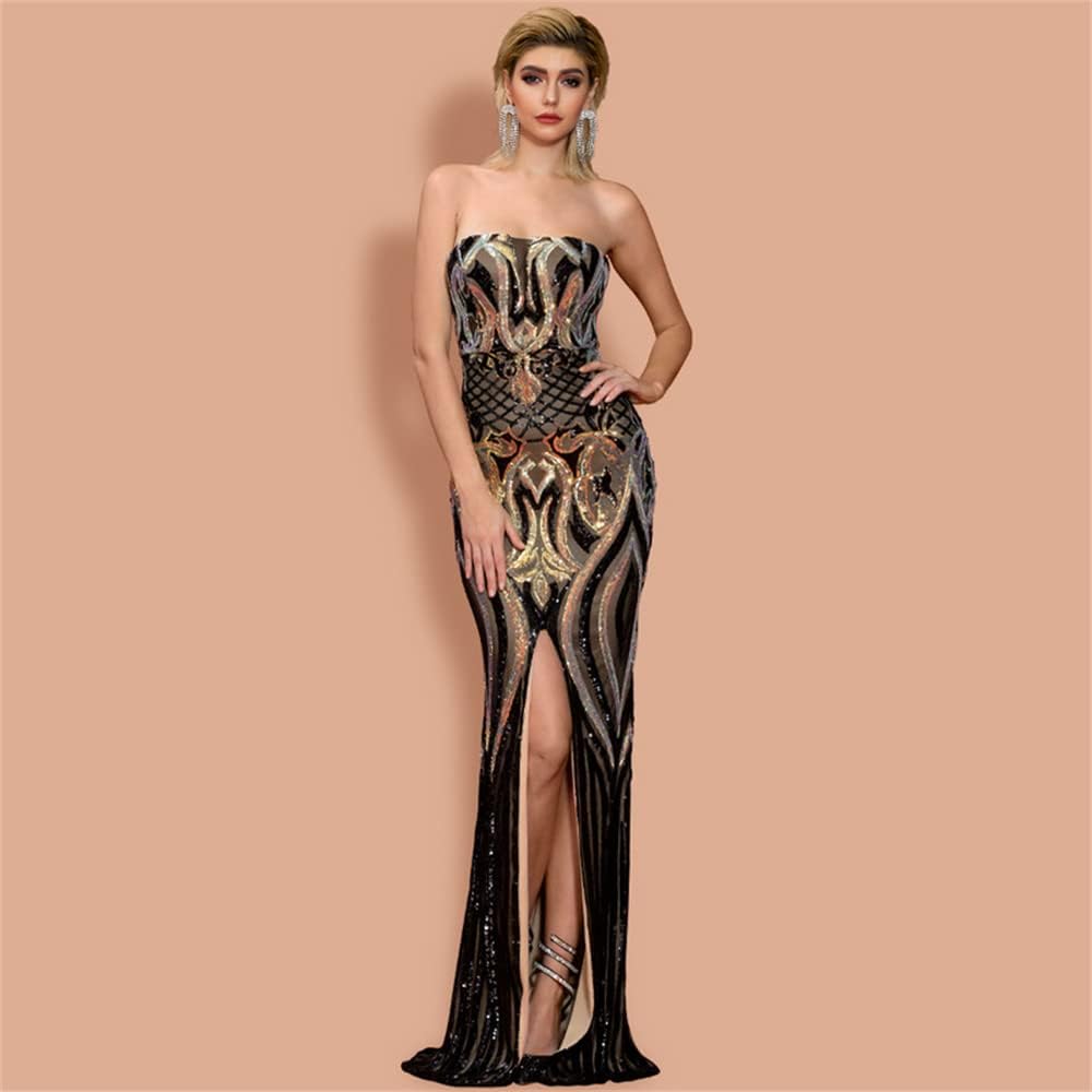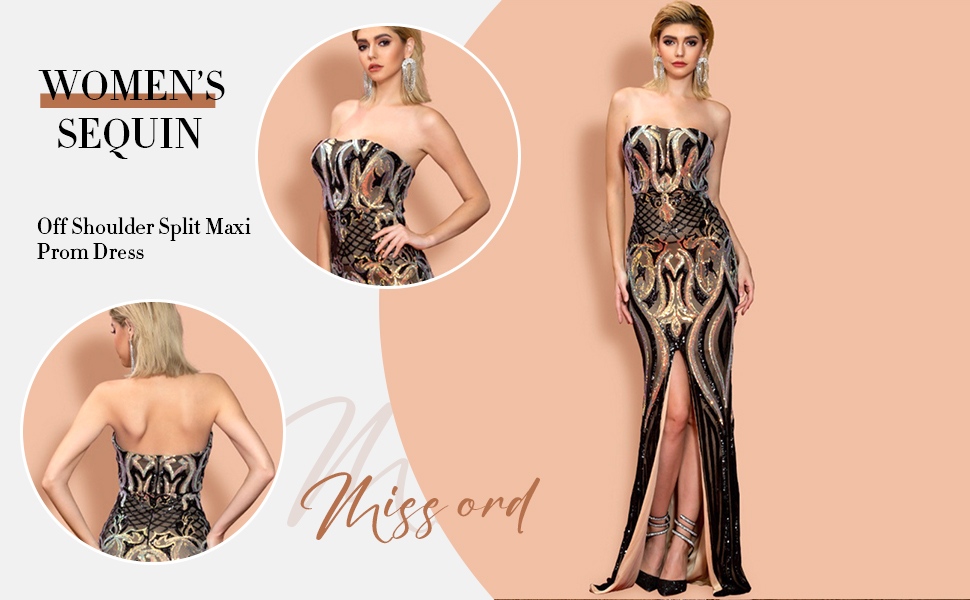 فستان Miss ord نسائي رسمي مثير بدون أكتاف طويل للحفلات الراقصة، فستان Bodycon بدون أكمام بفتحة على الفخذ