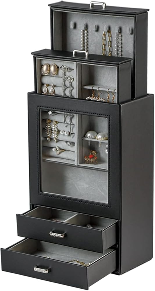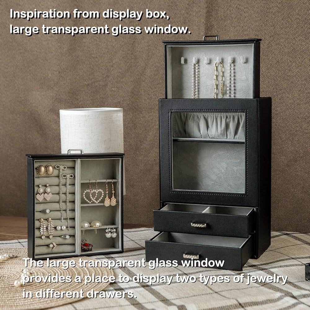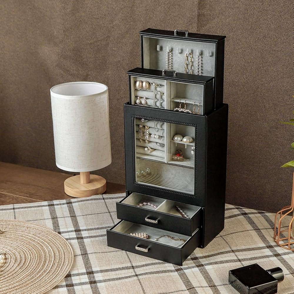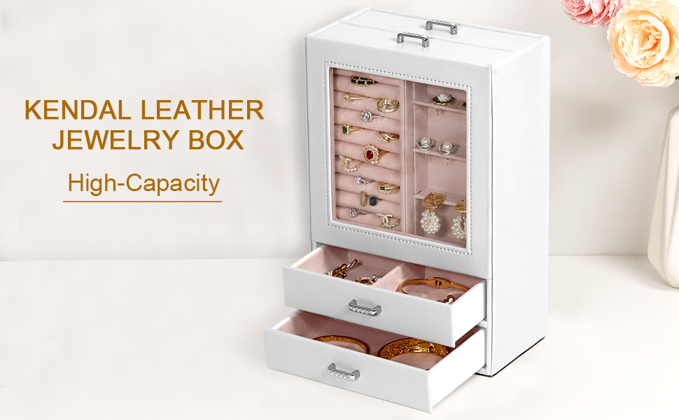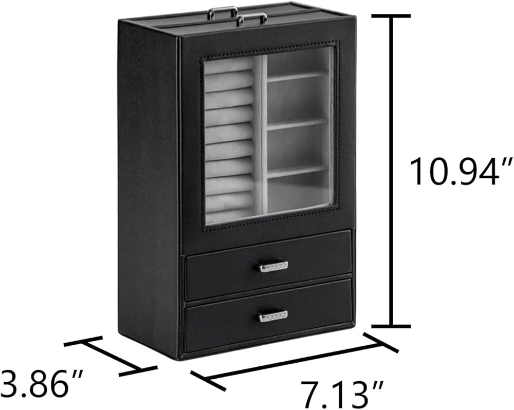 يستخدم منظم تخزين المجوهرات هذا جلد صناعي عالي الجودة صديق للبيئة ومقاوم للأوساخ ومقاوم للماء وسهل التنظيف. البطانة الداخلية مصنوعة من نسيج مخملي ناعم، والذي يمكن أن يحمي مجوهراتك من الخدوش والتلف، كل درج له مقبض معدني. لن تترك الأجهزة عالية الجودة بصمات الأصابع، مما يجعل استخدامك أكثر ملاءمة ويبدو أكثر روعة.