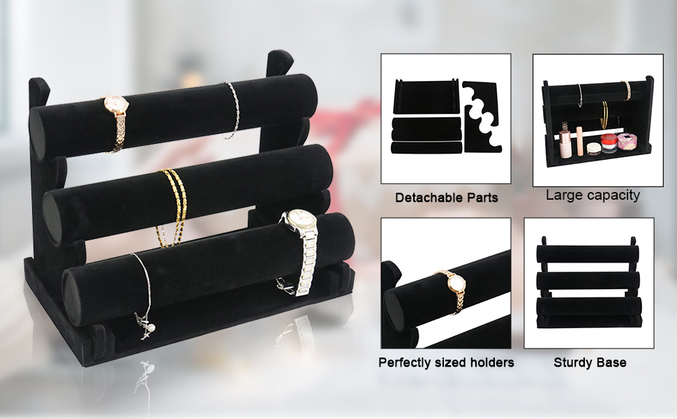 يتكون حامل السوار المخملي من سطح مخملي ولوح ليفي، ناعم بما يكفي لعرض الأساور والأساور والقلادات والساعات ويمنع الخدوش والأضرار.