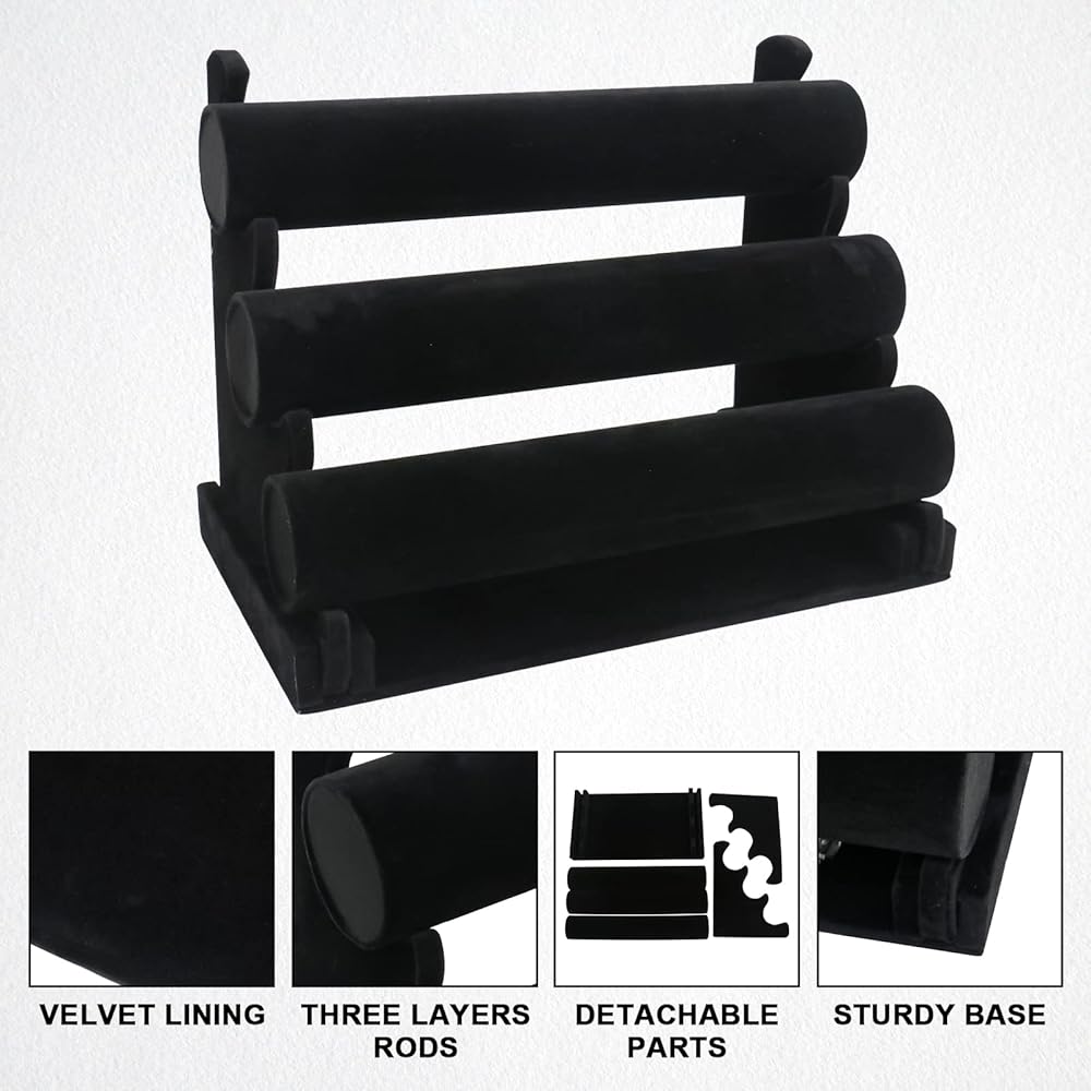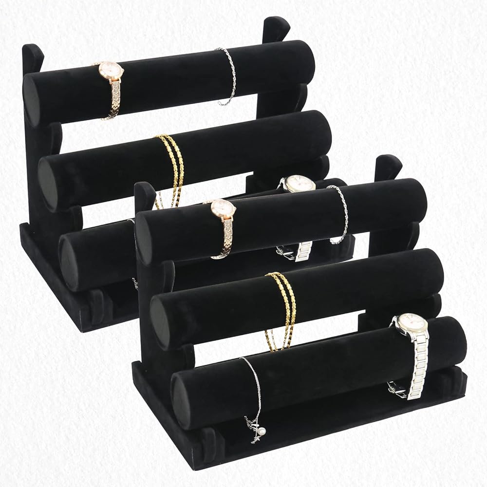 حامل سوار للعرض - ستضيف حوامل السوار المخملية السوداء الكلاسيكية لمسة أنيقة إلى خزانة الملابس أو حقيبة مستحضرات التجميل، مما يوفر عرضًا احترافيًا وأنيقًا.