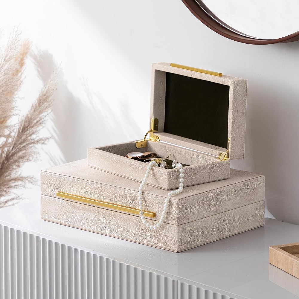 هدية رائعة: هدايا للرجال والنساء. سواء كنت تدلل نفسك أو تقدم هدية لصديقتك أو زوجتك أو أمك أو أي شخص آخر تحبه في عيد الحب أو عيد الميلاد أو عيد الأم أو الكريسماس أو يوم الذكرى السنوية أو الزفاف. يعد صندوق المجوهرات الحديث والمتعدد الاستخدامات الخاص بنا خيارًا مثاليًا.