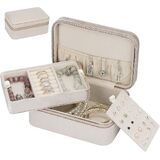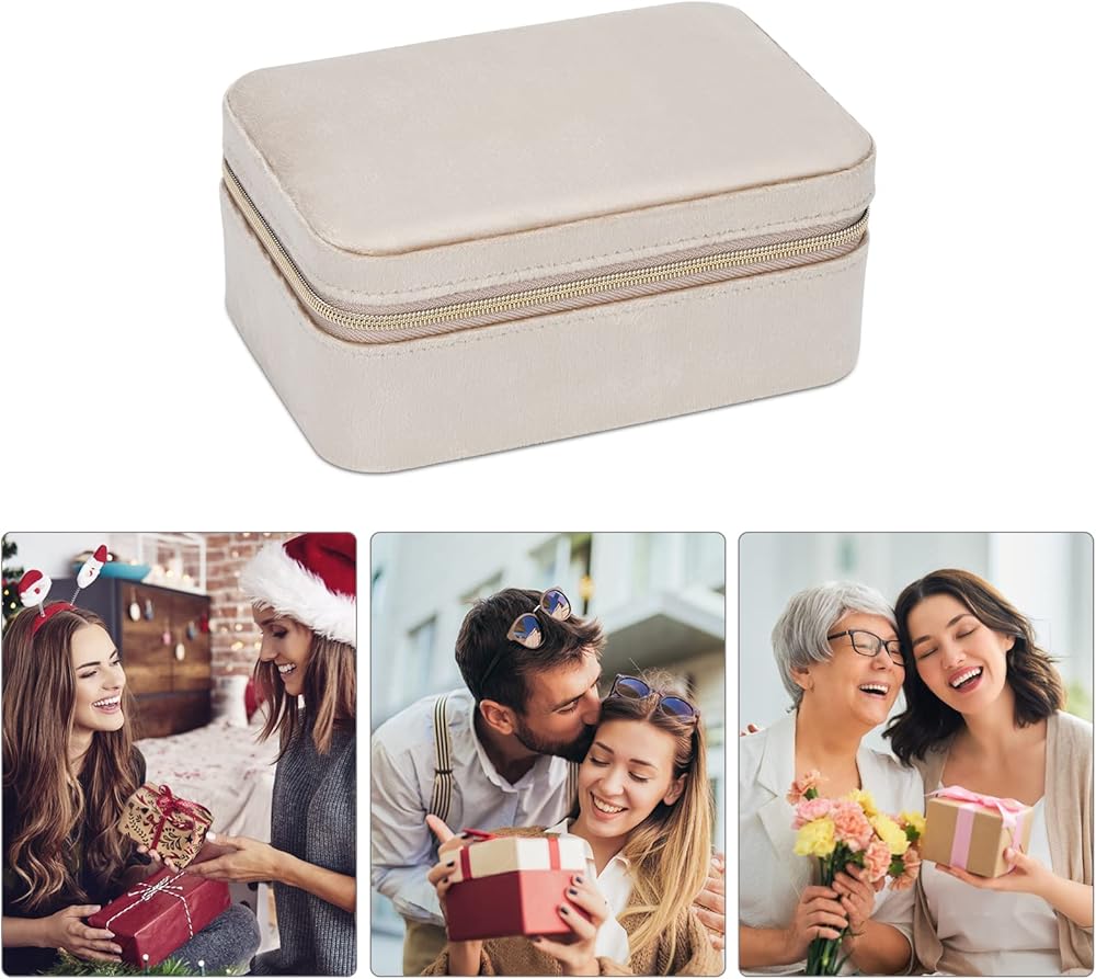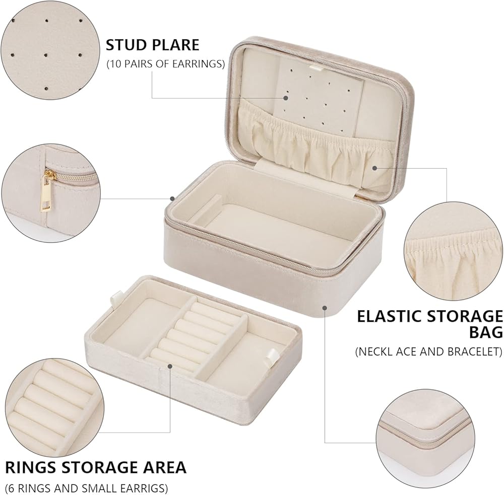 منظم صندوق مجوهرات للسفر من ATAIMEISEN، منظم مجوهرات صغير مخملي مخملي، منظم تخزين صغير للسفر، صناديق مجوهرات محمولة للنساء والفتيات، هدية/لون كريمي