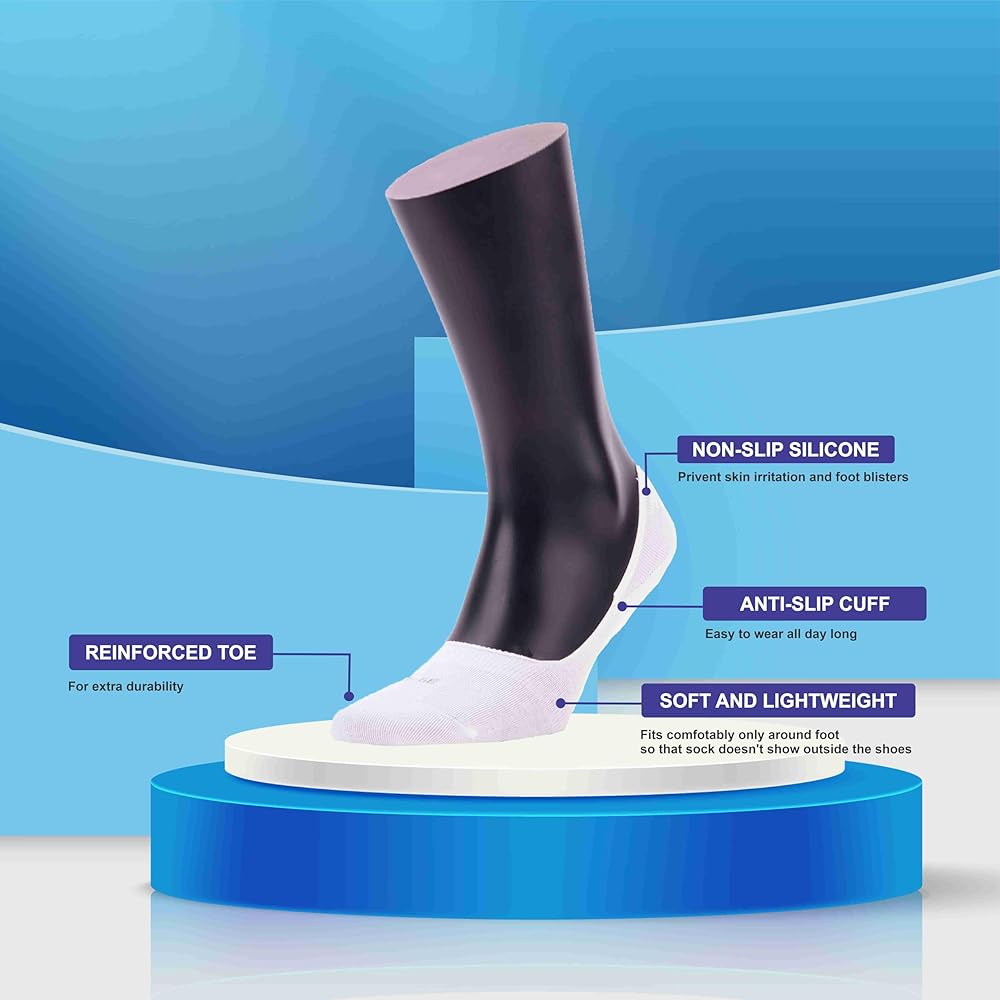 جوارب No Show للسيدات: مادة خفيفة الوزن مع تقنية امتصاص الرطوبة للحفاظ على قدميك جافة وخالية من الروائح، بينما يسمح التصميم البسيط لها بالتناسب بشكل آمن مع أي نوع من الأحذية.
