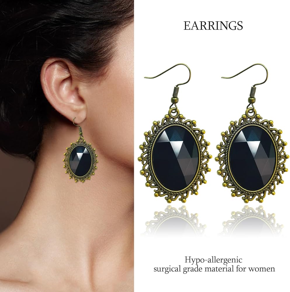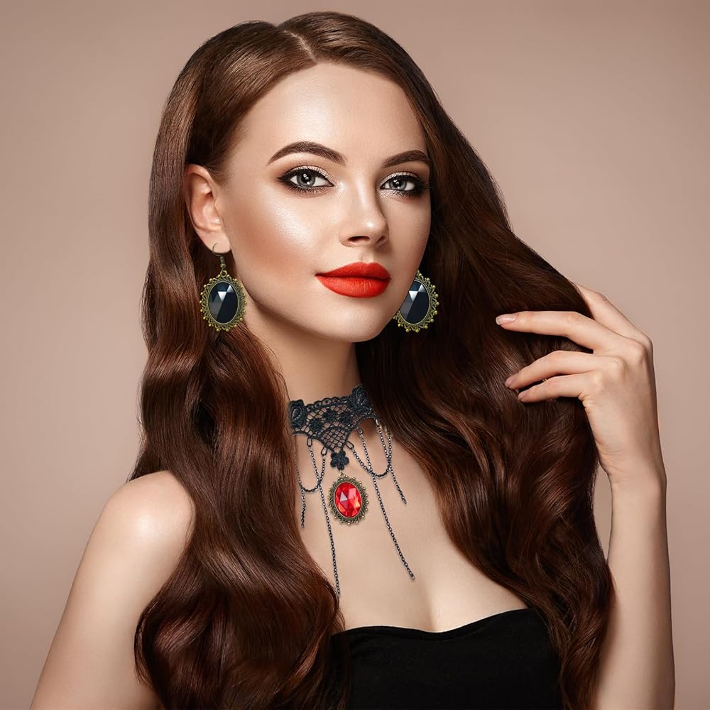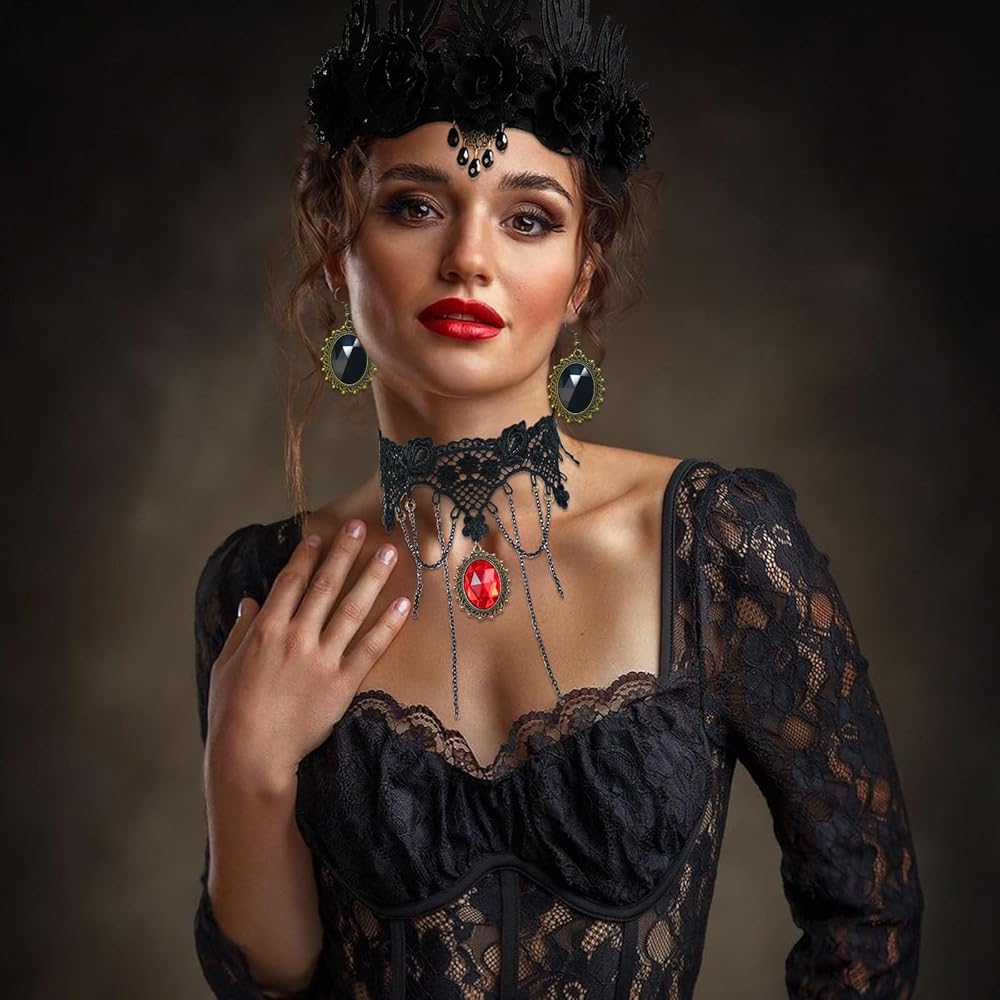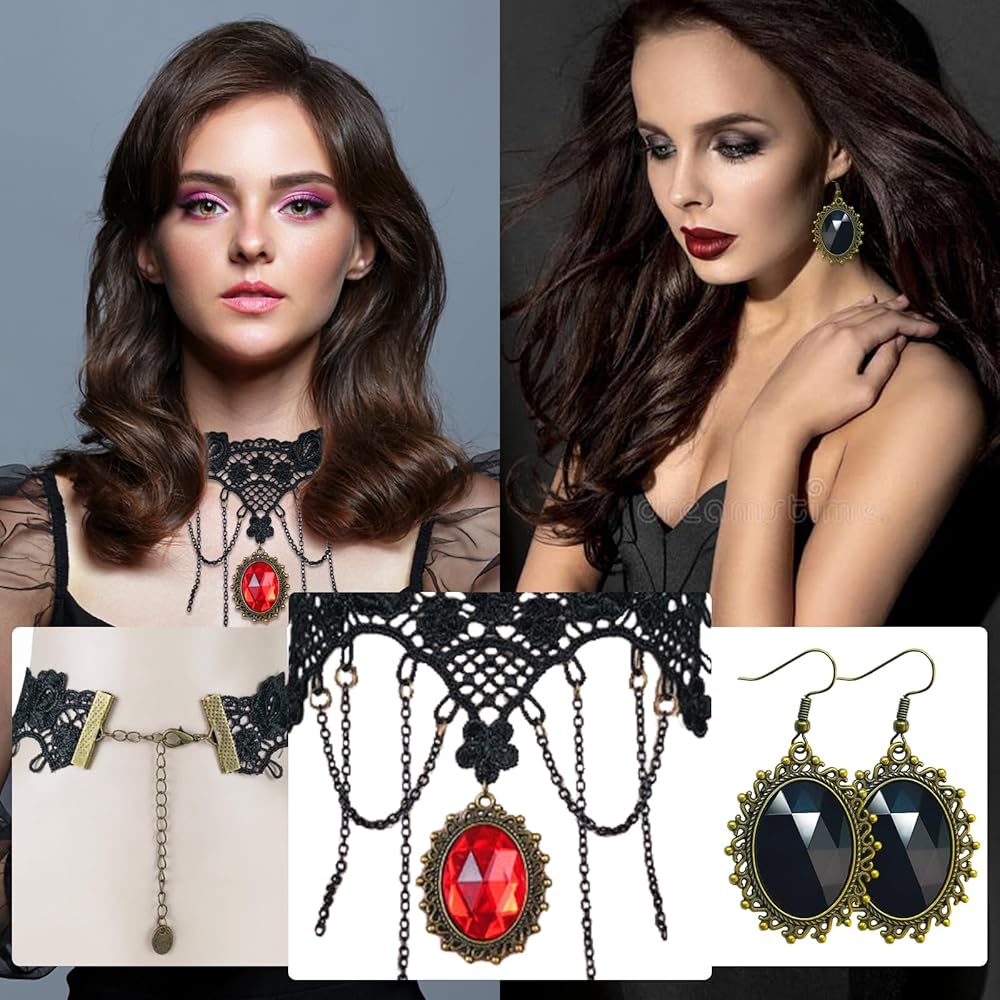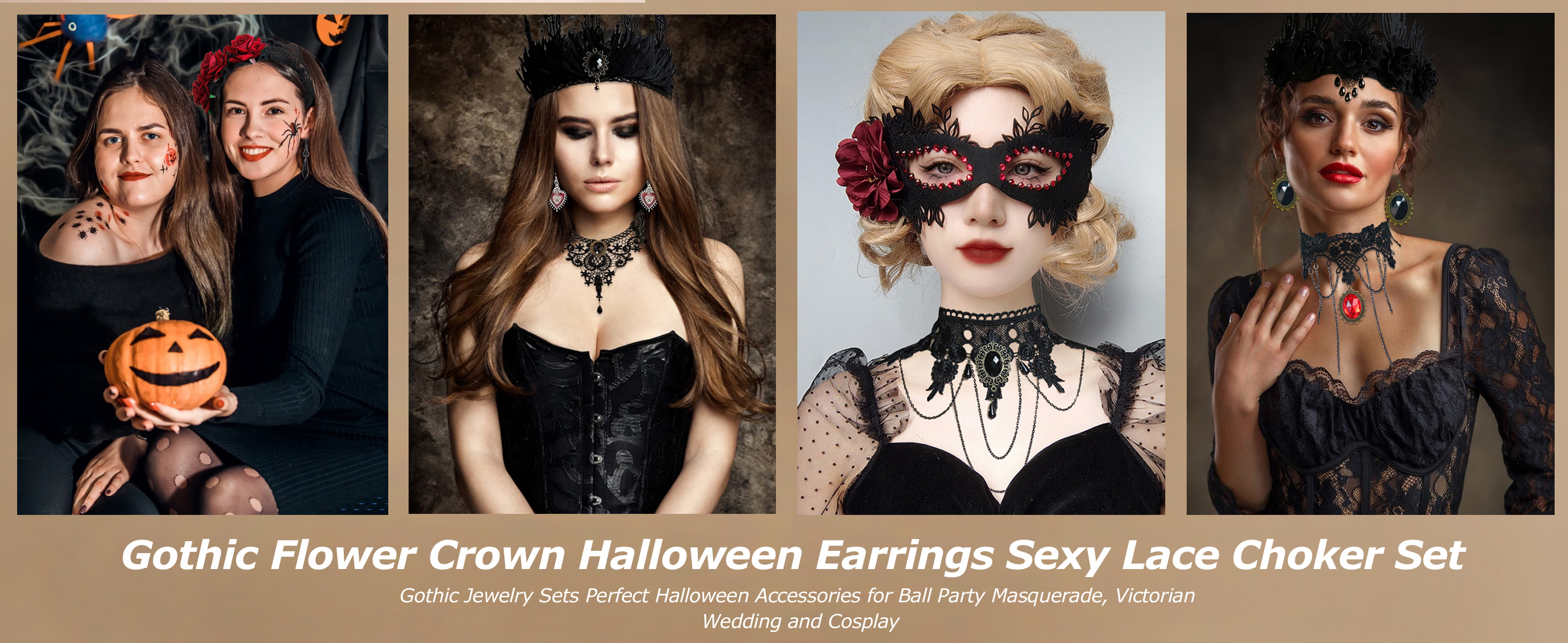 ❥مجوهرات قوطية عتيقة -- استخدم قناعًا من الدانتيل الأسود والكريستال عالي الجودة، ناعم ومريح في الارتداء، نسيج رقيق ورائع. تصميم السوار الكريستالي واضح، وسوف يوضع على يدك وهذا القرط الرائع يجعلك أكثر سحرًا وتميزًا أي مناسبات.