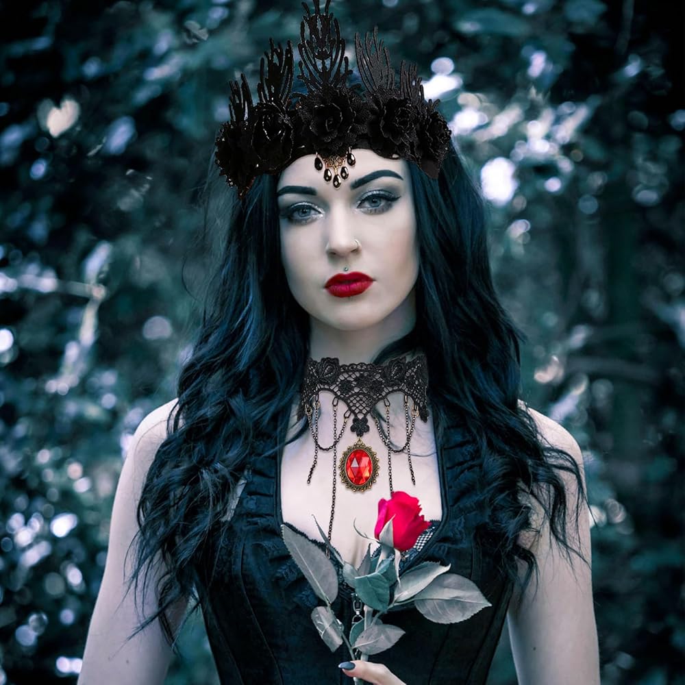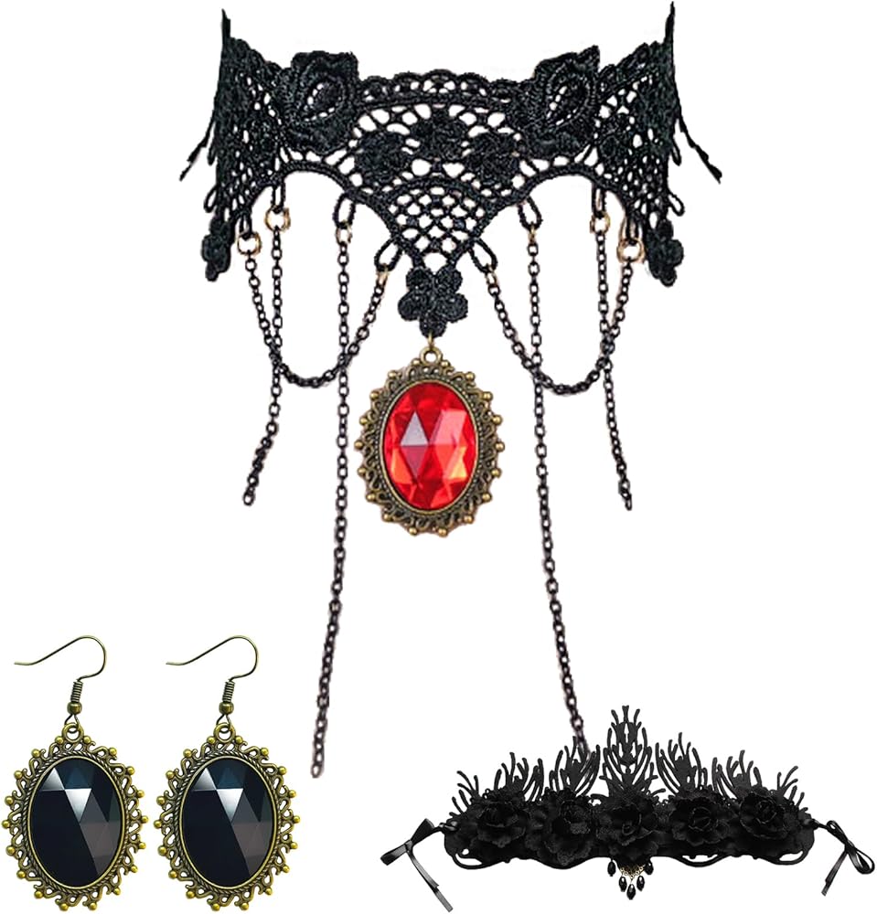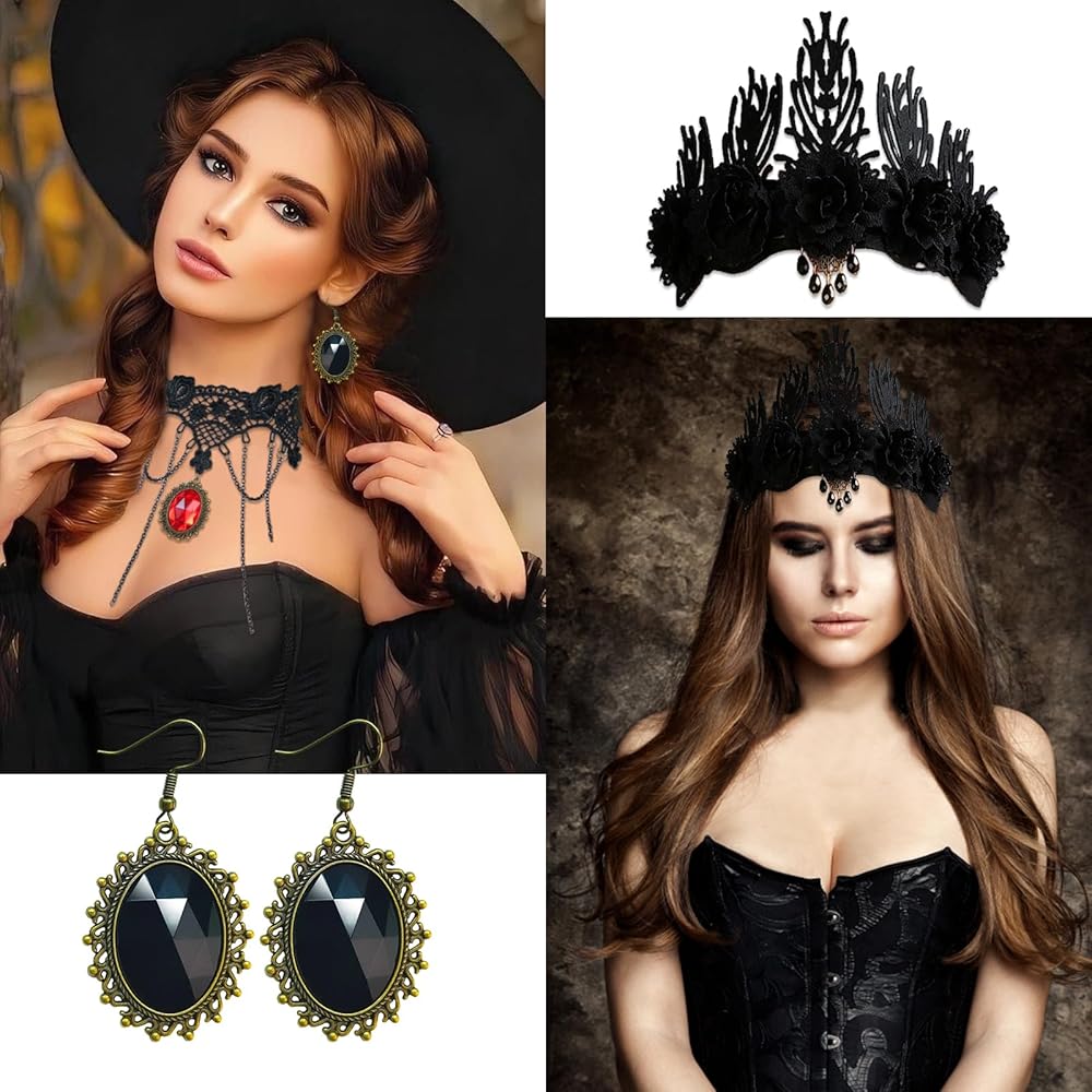 ❥حرفية ممتازة وتصميم أنيق -- مجوهرات سوداء مناسبة لجميع الأعمار للنساء والفتيات. النمط: مجموعة مجوهرات الوشم، مجموعة مجوهرات مميزة، مجموعة مجوهرات ذات طبقات، مجموعة مجوهرات الشرير البخارية، إكسسوارات الأزياء التنكرية، مجموعة مجوهرات بانك