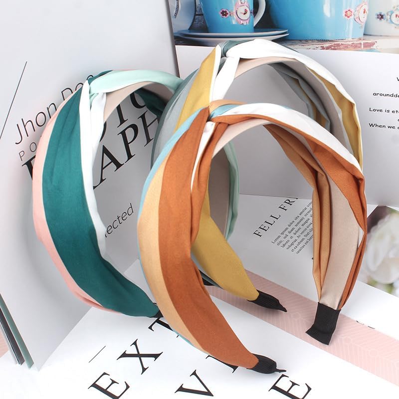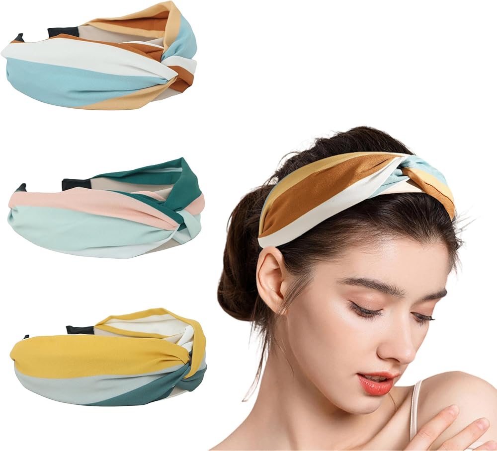 3 مجموعات من عصابات الرأس المعقودة للنساء، عصابات رأس عريضة صلبة مضادة للانزلاق للفتيات، عصابات شعر بعقدة، إكسسوارات شعر للمطابقة اليومية، مزيج الألوان