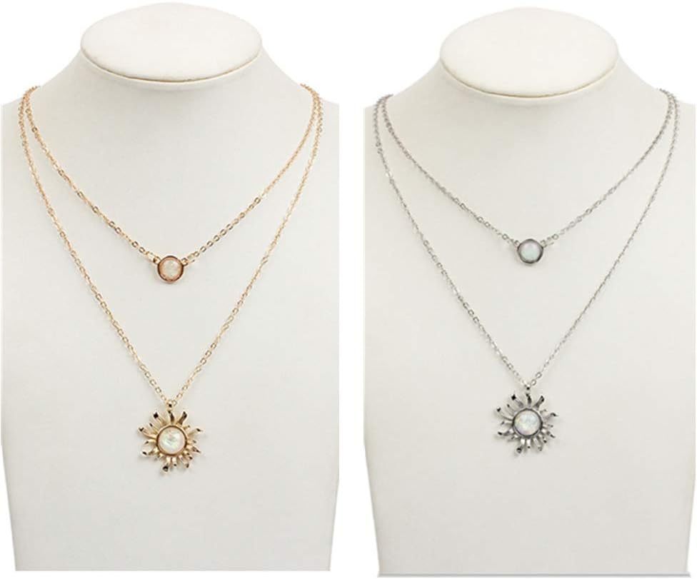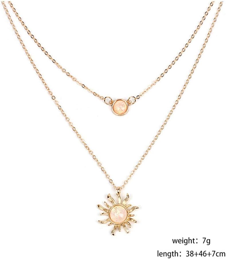 المنتج: قلادة بدلاية من طبقتين من حجر الأوبال على شكل قمر وشمس عباد الشمس