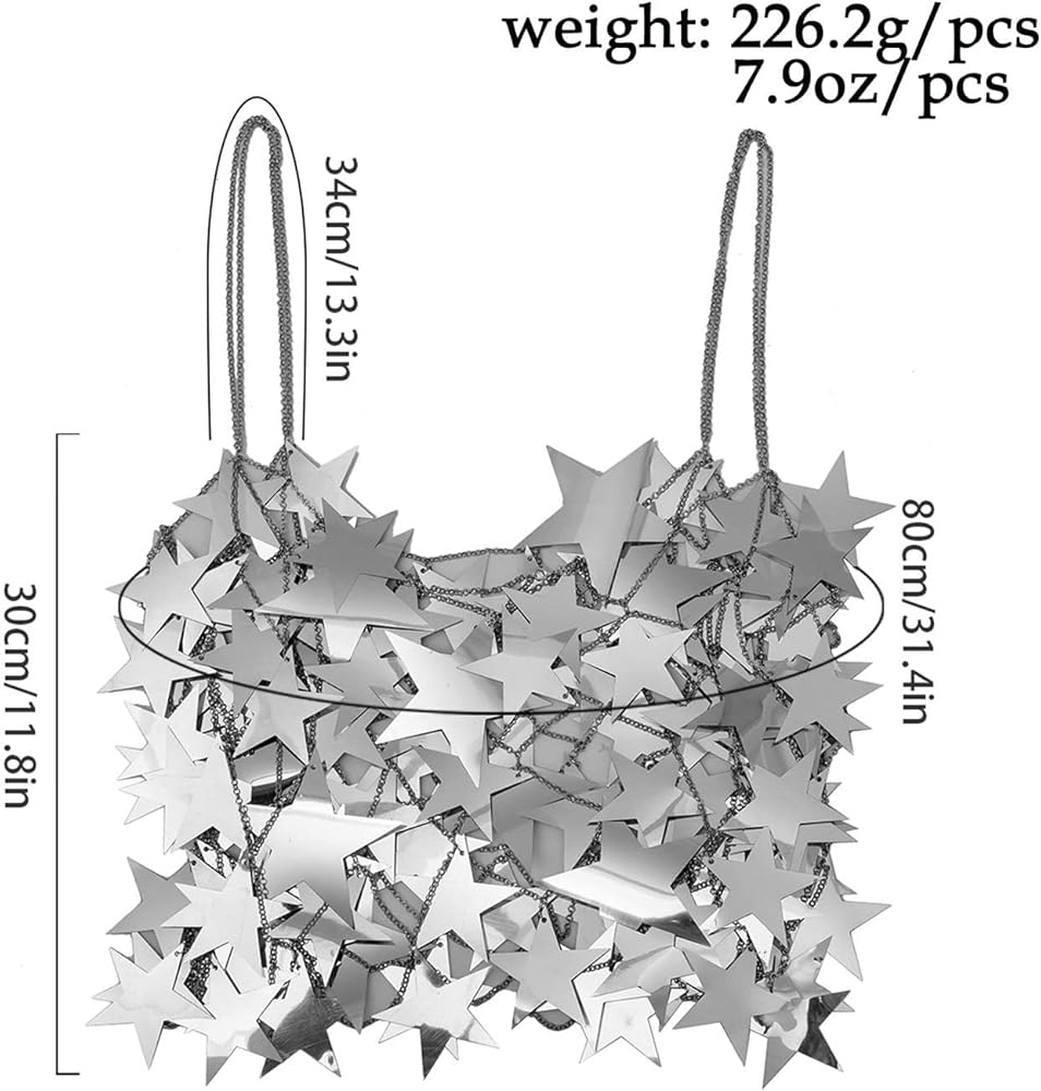 Features: silver, sleeveless, transparent, hollow out, very sexy, sparkling, decorated with glittering sequins in star shape. Make you attractive in the crowd.