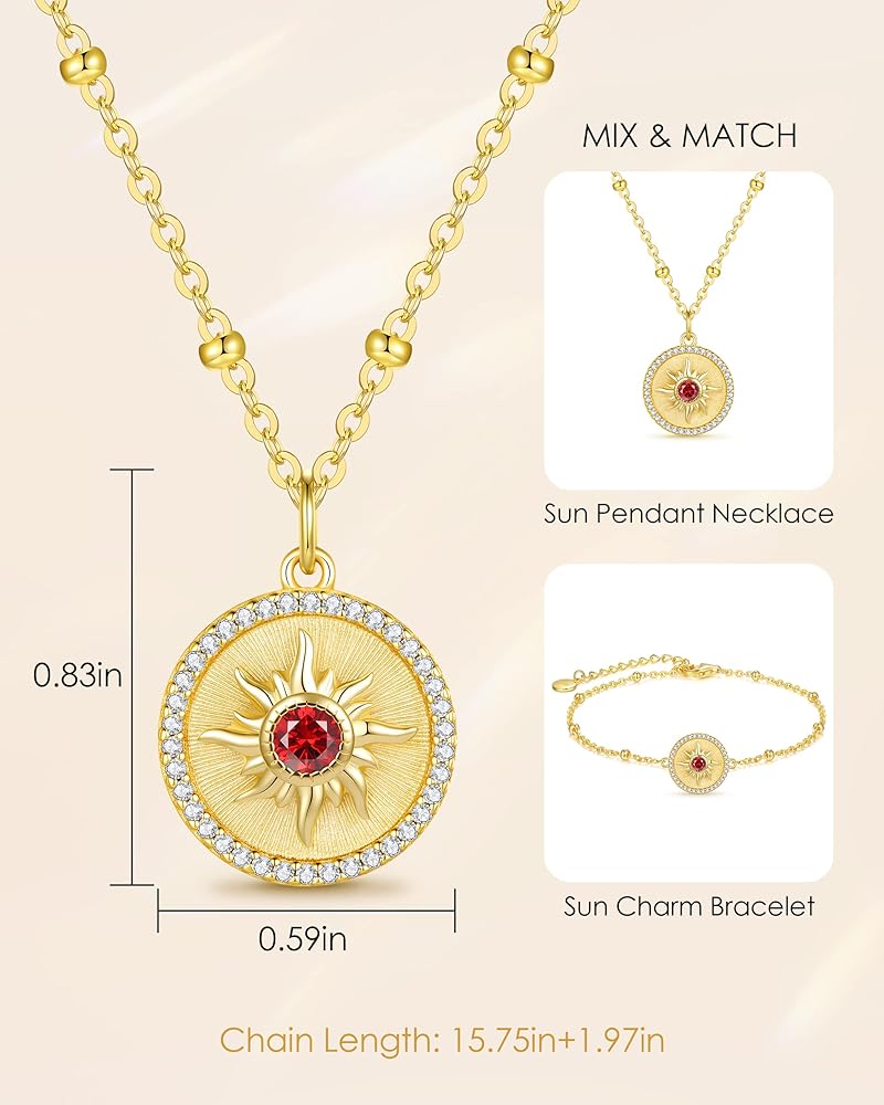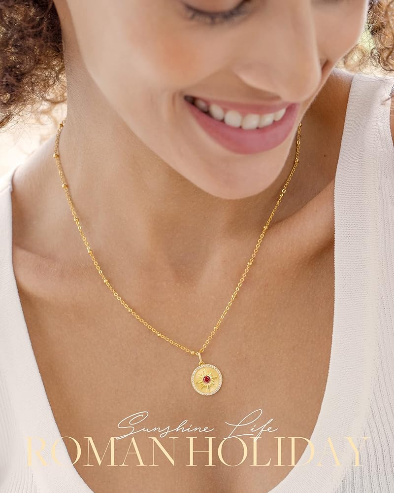 ☀ قلادة منقوشة بالعملة المعدنية: تشع أجواء الآلهة على مدار العام في قلادة الشمس الجذابة هذه. مع هذه القلادة وقلادة الشمس الصغيرة، سوف تتألقين تقريبًا مثل الشمس نفسها. تتميز قلادة الميدالية الدائرية هذه بقلادة شمسية مزينة بأحجار AAAAA