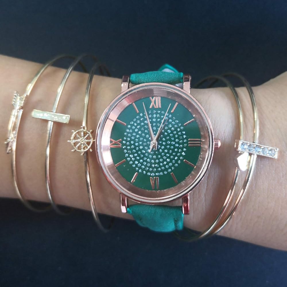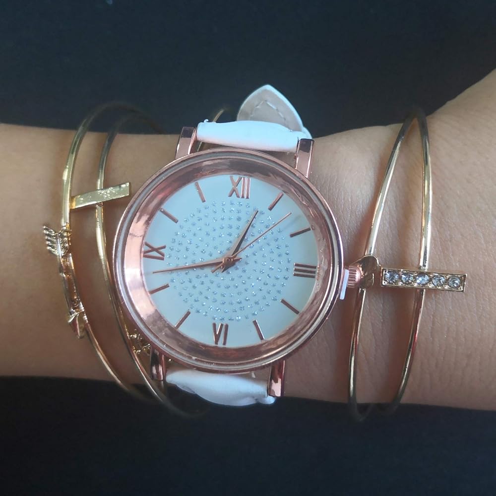 - ما تحصل عليه: إجمالي 8 قطع ساعات نسائية + 5 قطع سوار، مما سيصلح ملابسك اليومية.
