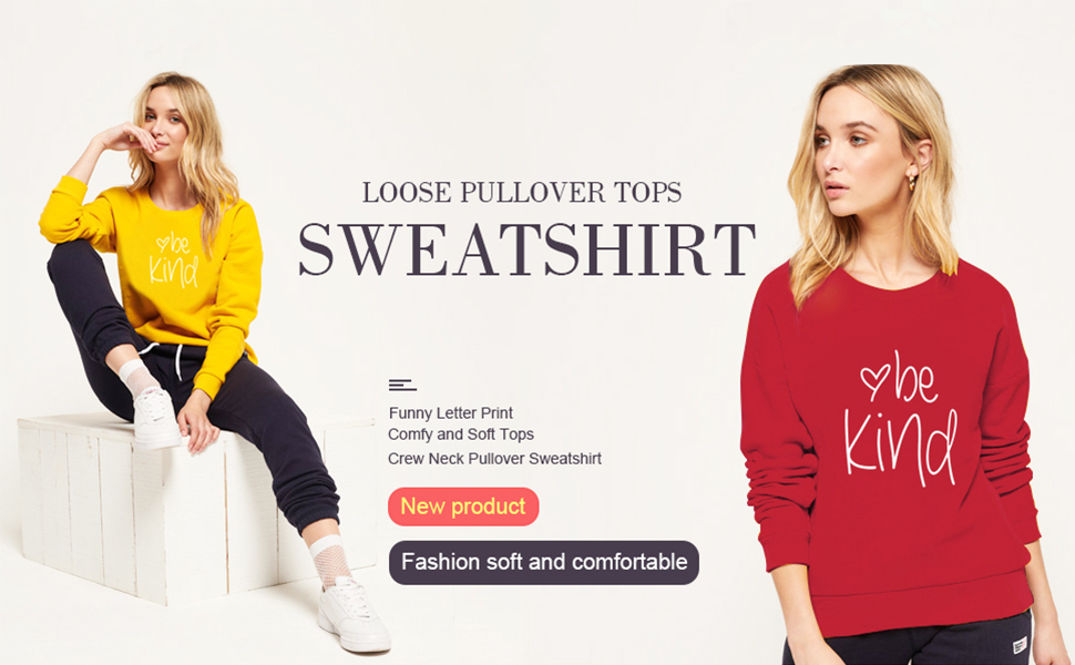 قمصان سويت شيرت نسائية ذات رسومات من Mom's Care بأكمام طويلة وقمصان عصرية لطيفة من نوع Be Kind
