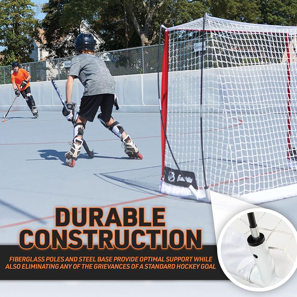 متانة لا مثيل لها: مع التصميم الجديد لهدف الهوكي المصنوع من الألياف الزجاجية والستيل لن تضطر إلى أن تكون مثقلًا بسبب مظالم شبكة الهوكي القياسية