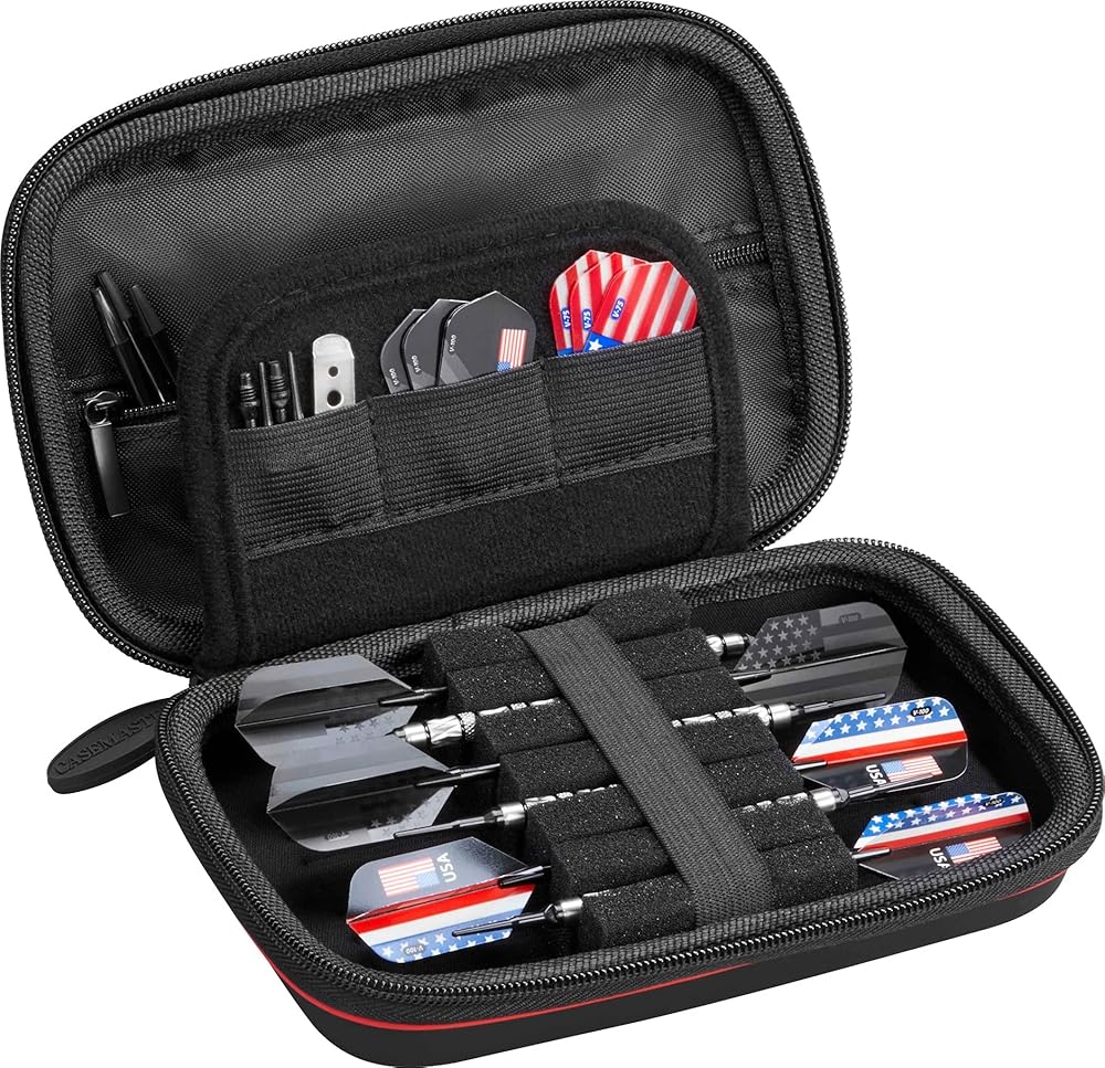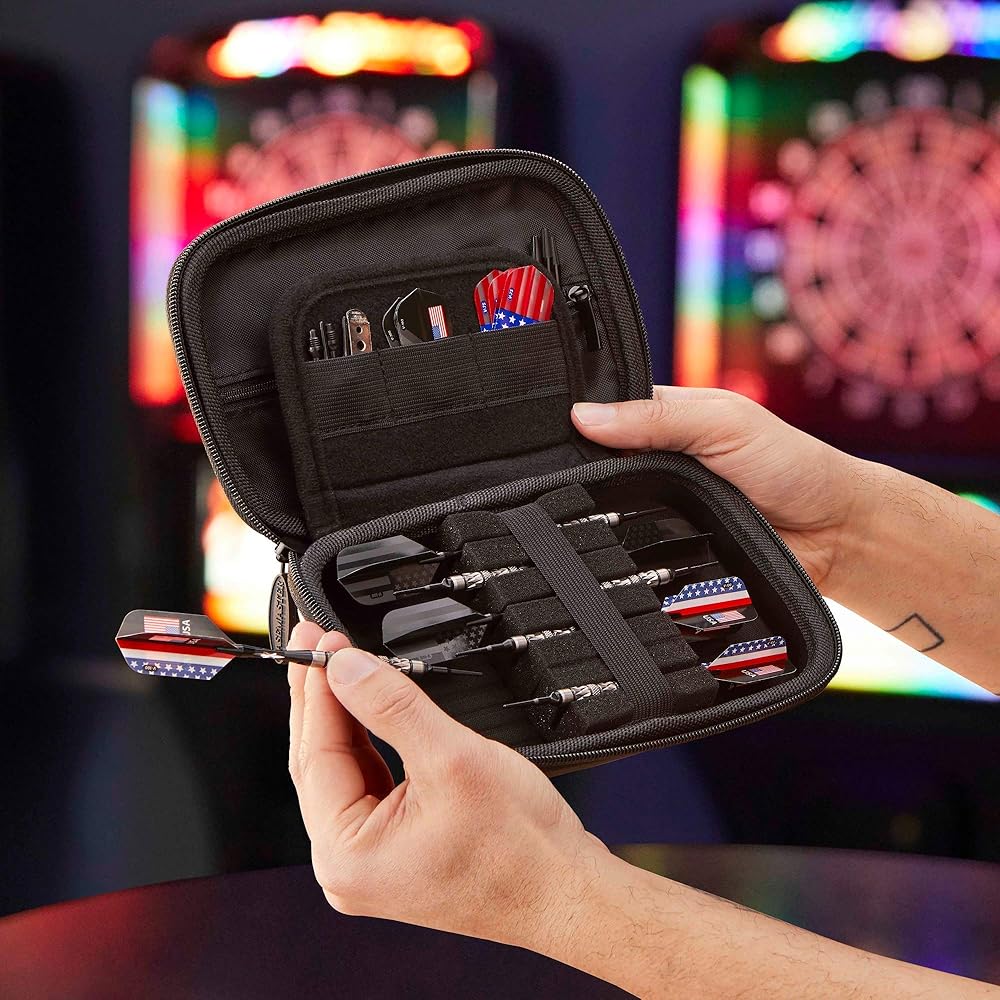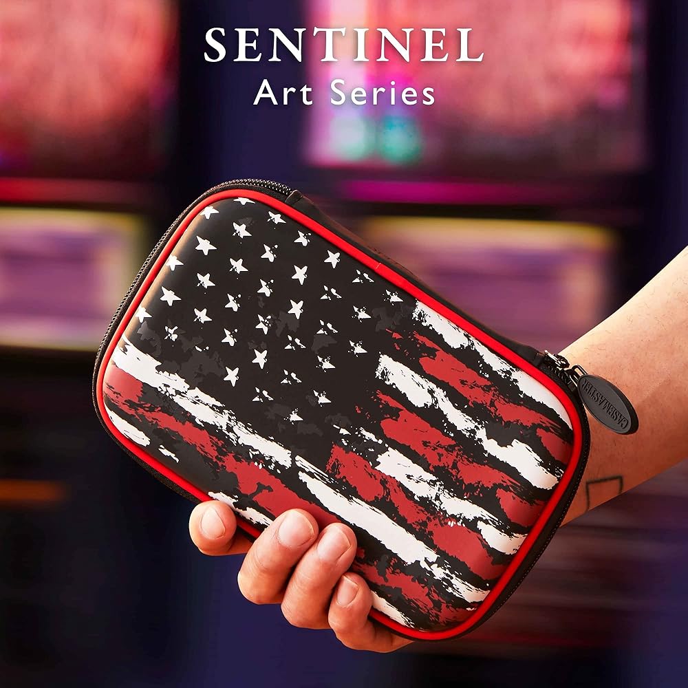 حافظة رمي السهام سينتينل من كيس ماستر مثالية لقضاء ليلة من السهام. يمكن لهيكل السهام العريض هذا حمل مجموعتين من السهام بشكل مريح، ما مجموعه ستة أسهم، دون سحق رحلاتك. يتحمل غلاف ايفا المصبوب السقوط ويطرد الرطوبة ويحافظ على سهامك آمنة من العناصر، مما يضمن أنك جاهز دائمًا للعب. تعمل الحشوات الإسفنجية على تأمين سهامك حتى لا ترتد، كما تحافظ الجيوب الملائمة المثالية على ملحقاتك منظمة. توفر الحواف الإسفنجية الخارجية قبضة إضافية حتى لا تنزلق الحافظة من يديك أو من الأسطح الزلقة. حافظة رمي السهام من سنتينل هي الحل الأمثل للسهام أثناء التنقل.