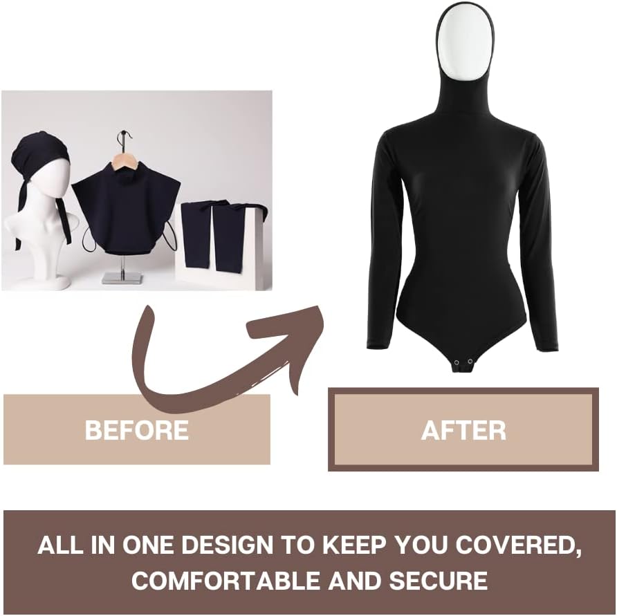 【تغطية كاملة】: توفر بدلة الحجاب الخاصة بنا تغطية كاملة لشعرك ورقبتك وذراعيك وجسمك، مما يسمح لك بارتداء أي ملابس بثقة.