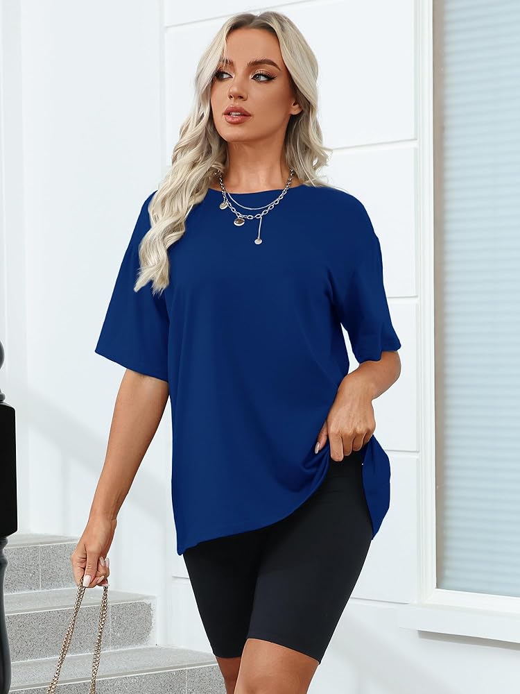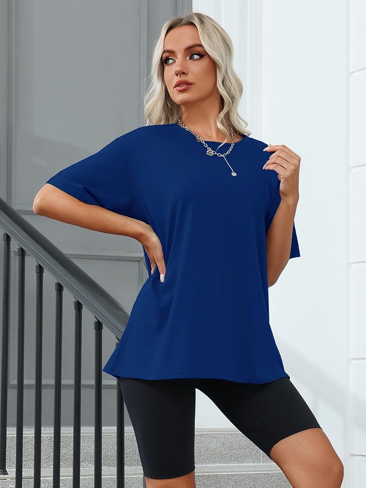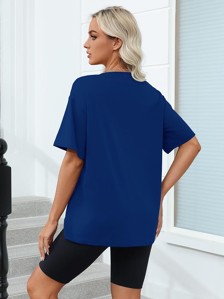 【المزايا】قمصان رياضية كبيرة الحجم للنساء، بلايز تمرين للنساء، تيشيرتات نسائية فضفاضة، بلايز نسائية بأكمام قصيرة، قمصان أساسية للنساء، قبة دائرية، لون سادة، لا تنتهي موضتها أبدًا