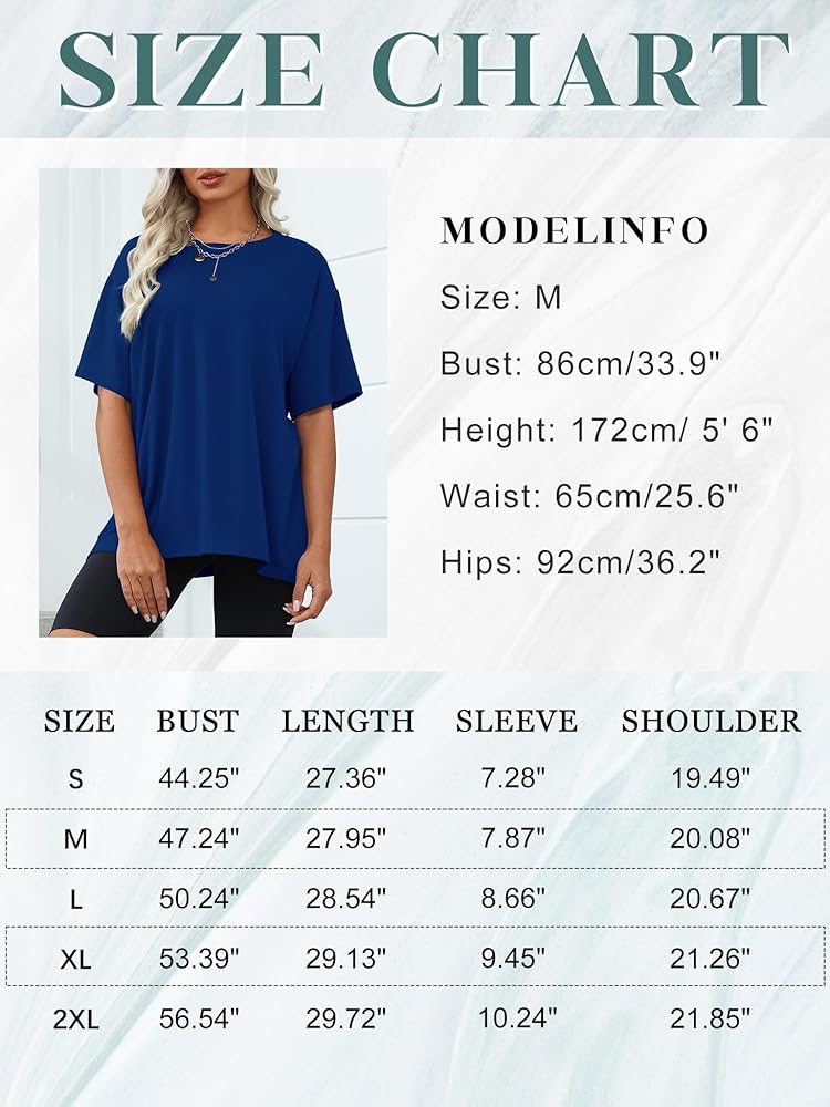 【محتويات العبوة】1 × تي شيرت كبير الحجم للنساء، ملابسنا الكاجوال للتمارين الرياضية للنساء مصنوعة بمقاس US قياسي، يرجى التكرم باختيار المقاس المناسب وفقًا لجدول المقاسات الخارجي: )