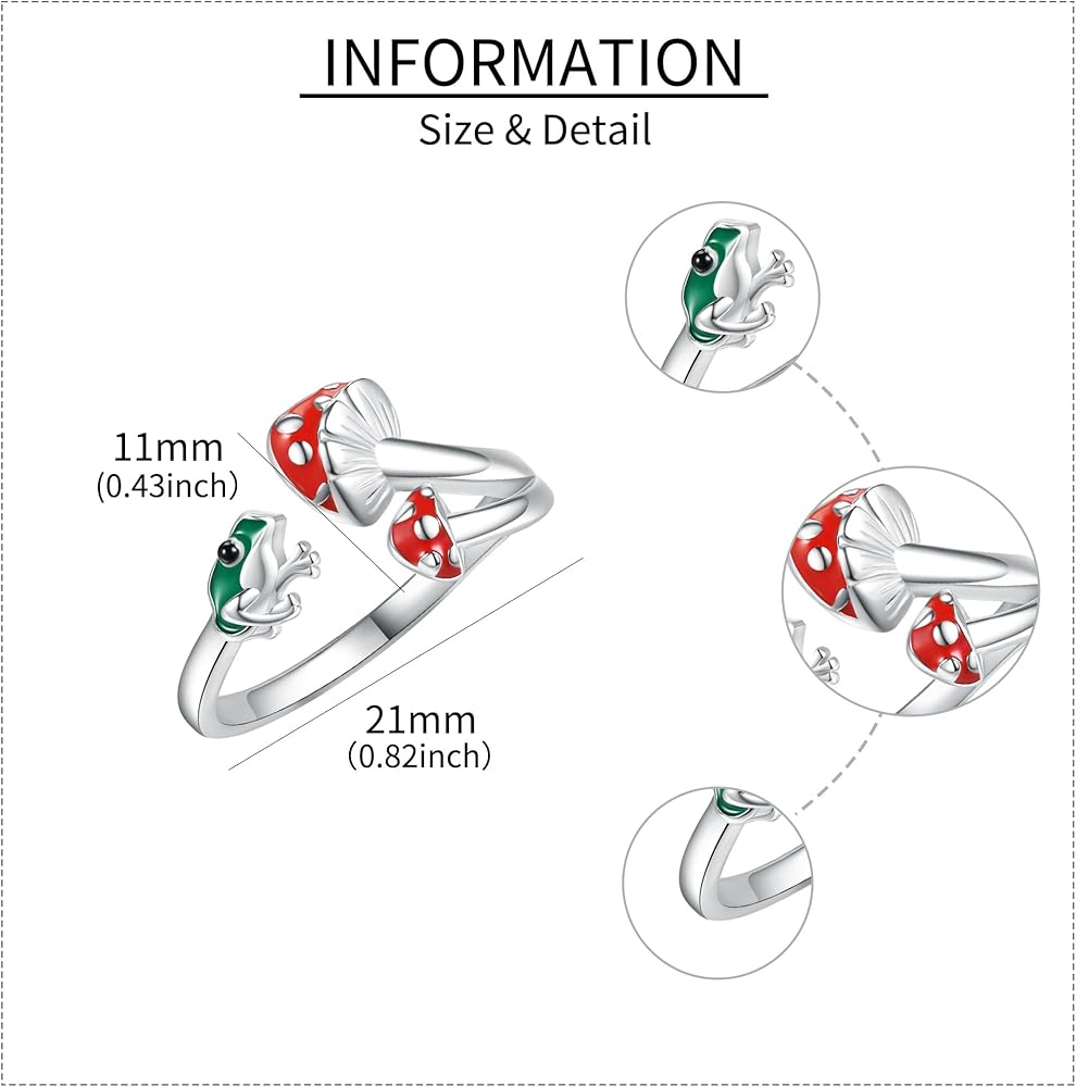 [Material] The frog rushroom Ring is made of 925 sterling silver, which is hypoallergenic, tarnish resistant, nickel-free, lead-free, cadmium-free, suitable for long-term wear, especially sensitive one.The ring is made of electroplating, you don't have to worry about it turning black or green.