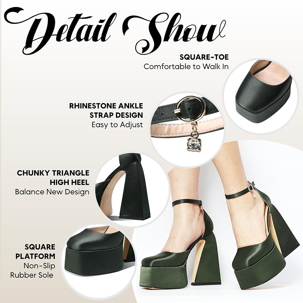 • الأبعاد: يبلغ طول هذه الأحذية ذات الكعب العالي للنساء حوالي 12.5 سم/5.11 بوصة ومنصة 5 سم/1.96 بوصة