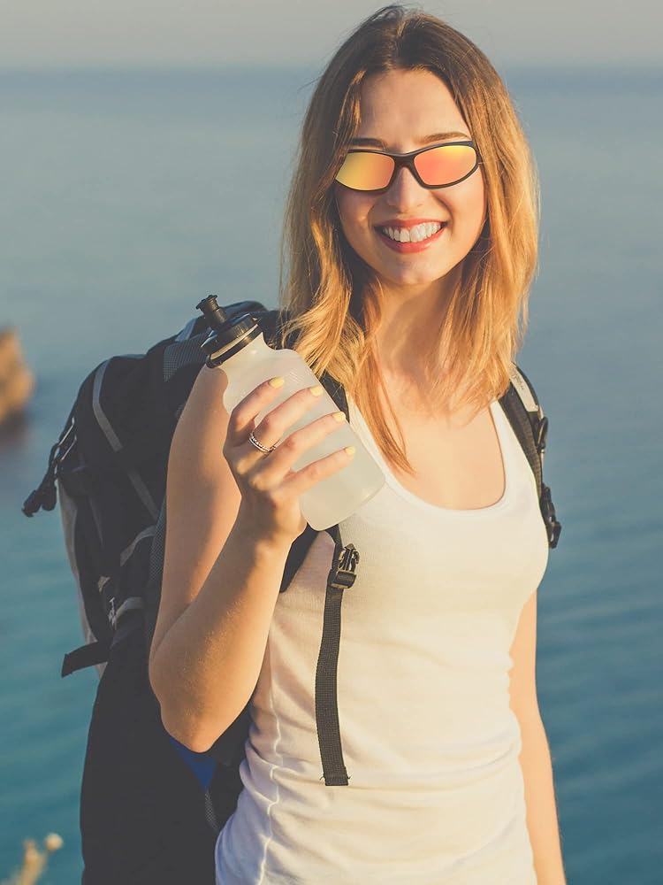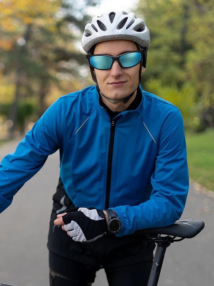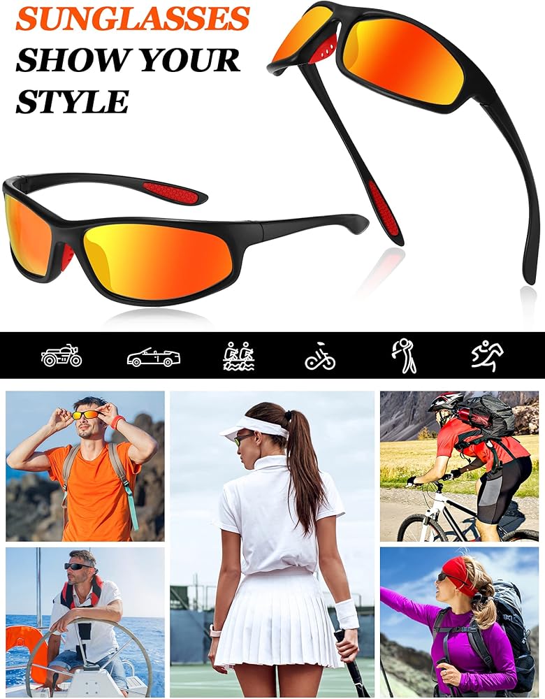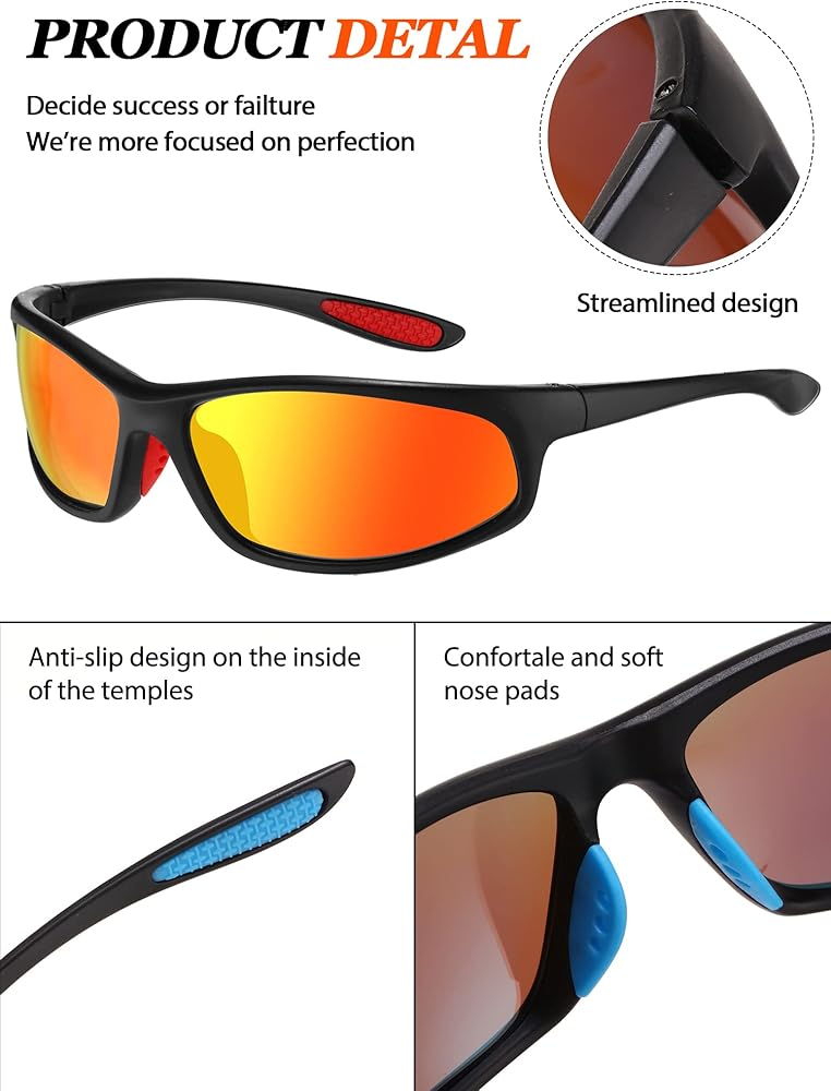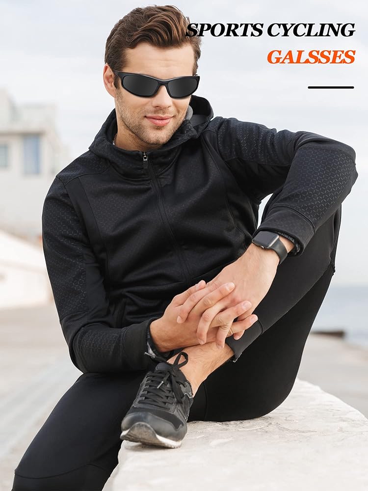 تصميم ملفوف: نظارات الشمس الرياضية للرجال ذات الحماية من الأشعة فوق البنفسجية تتميز بتصميم انسيابي، والنظارات تحيط بوجهك وتناسب شكل وجهك بشكل أقرب وأكثر راحة؛ كما أن الصدغين يعتمدان على تصميم مانع للانزلاق لزيادة الاحتكاك بين الصدغ والرأس، فلا داعي للقلق بشأن الانزلاق عند ممارسة بعض الألعاب الرياضية.