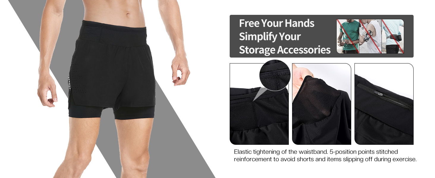 رائع للتمارين عالية الكثافة، والتدريب، والجري السريع، والجري لمسافات طويلة، وما إلى ذلك، يمكن لشورتنا الرياضية الثابتة والمريحة أن تحرر يدك وتبسط معدات التخزين الخاصة بك.