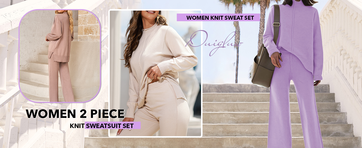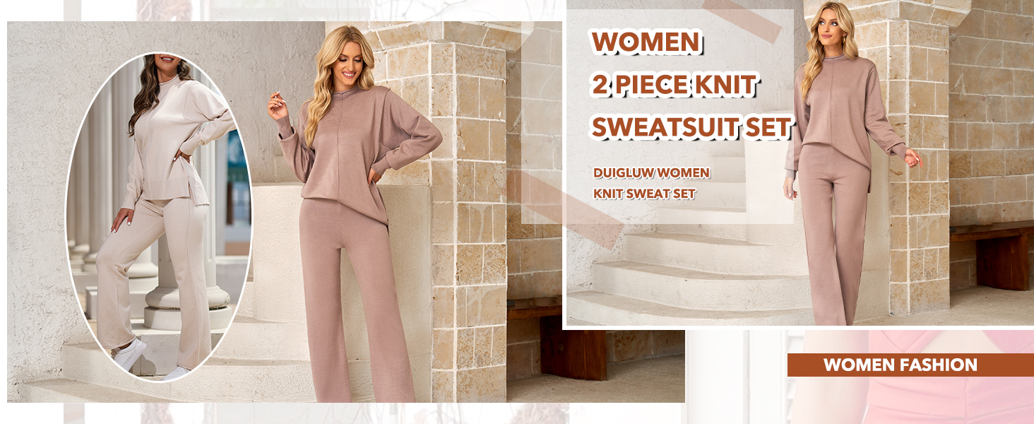 - مجموعة ملابس كاجوال محبوكة من قطعتين، ناعمة ومريحة ومترهلة، يمكن غسلها في الغسالة، بدون استخدام مبيضات