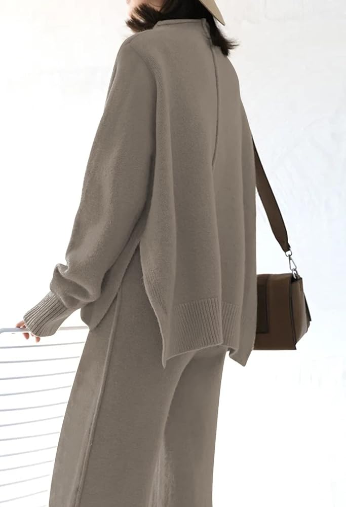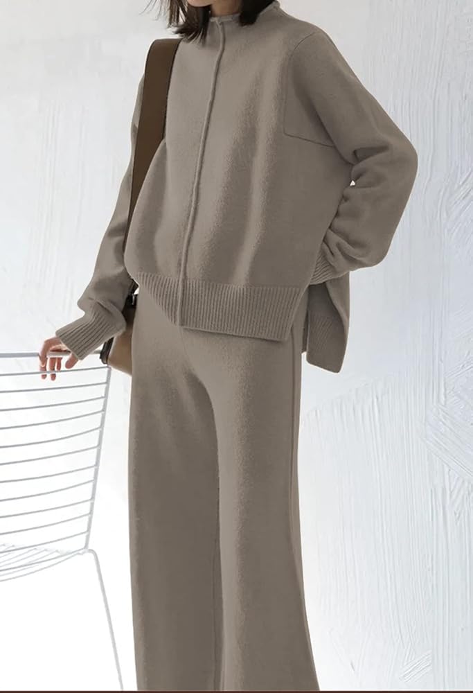 - تتميز مجموعة السترة المحبوكة برقبة وهمية، وأكمام طويلة، بلوفر، وخصر مرتفع، وبنطلون واسع، ومجموعة محبوكة متطابقة، ومقاس فضفاض