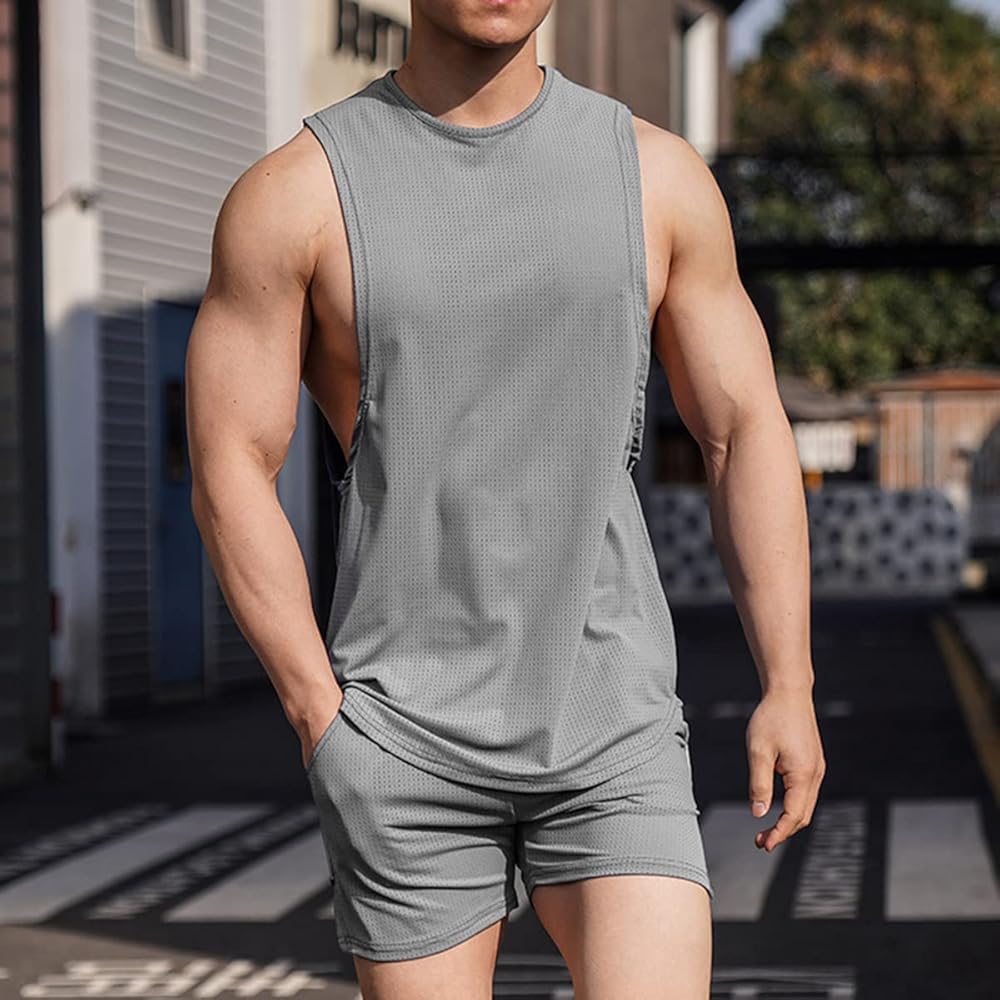 التصميم - تم تصميم قمصان الصالة الرياضية الرياضية للرجال على شكل رقبة دائرية وحاشية منحنية، وتتميز بقميص بدون أكمام عميق القطع مناسب لإظهار اللياقة البدنية للعضلات والسماح بأقصى قدر من الحركة. إنها متعددة الاستخدامات ويمكن ارتداؤها ليس فقط في صالة الألعاب الرياضية ولكن أيضًا للأنشطة الخارجية مثل المشي لمسافات طويلة أو الركض، بالإضافة إلى الملابس غير الرسمية أو عطلة الشاطئ.