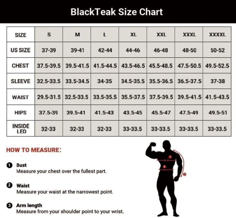 يرجى الرجوع إلى جدول مقاسات BlackTeak الخاص بنا بعناية قبل الشراء.