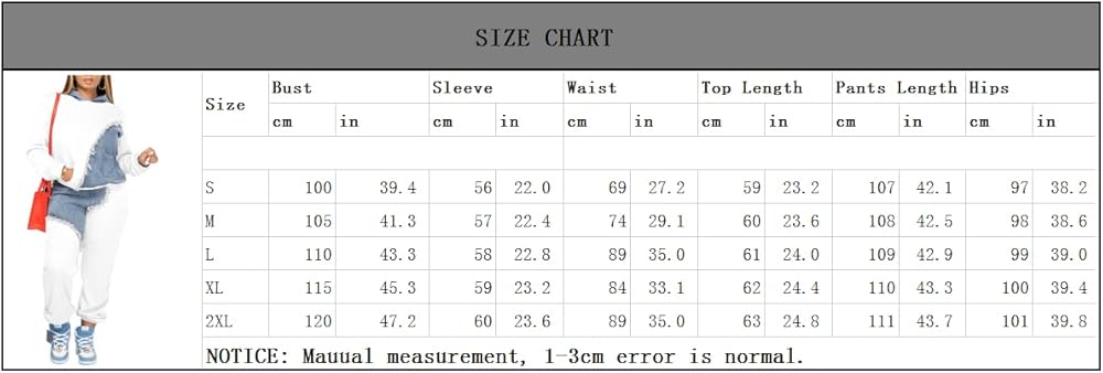 • ملاحظة: طقم ملابس نوم للنساء بأكمام طويلة مرقعة من الجينز بتصميمات أنيقة تجعلك تبدين أكثر عصرية! الخريف والشتاء قادمين، أنت تستحق هذه البدلة الرياضية للنساء المكونة من قطعتين! يرجى الرجوع إلى جدول المقاسات قبل الشراء.