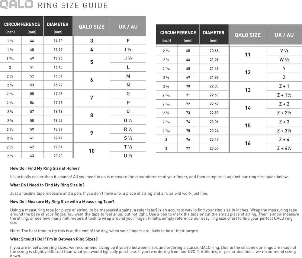 FIT & SIZING: Our QALO silicone rings are made from medical grade silicone, breathable and measures 8.5mm wide and 2.5mm thick. Our silicone rubber rings for men run true to size. Be sure to check out our sizing guide for the best fit. NOTE: Half sizes should size down.