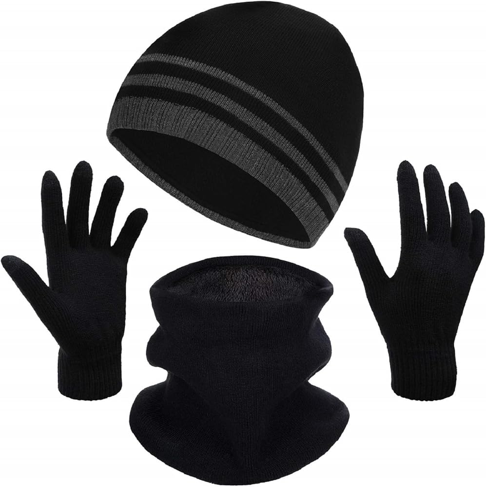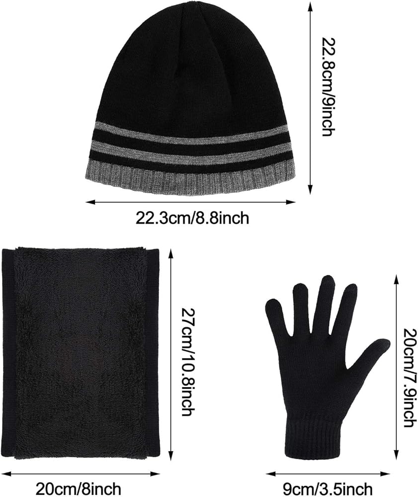 • مجموعة إكسسوارات الشتاء للرجال: سوف تحصل على قطعة واحدة قبعة صغيرة شتوية، قطعة واحدة وشاح محبوك دافئ، زوج واحد من قفازات شاشة اللمس، مجموعة محبوكة دافئة مثالية للرجال لارتدائها في الطقس البارد وتمنحك حماية شاملة
