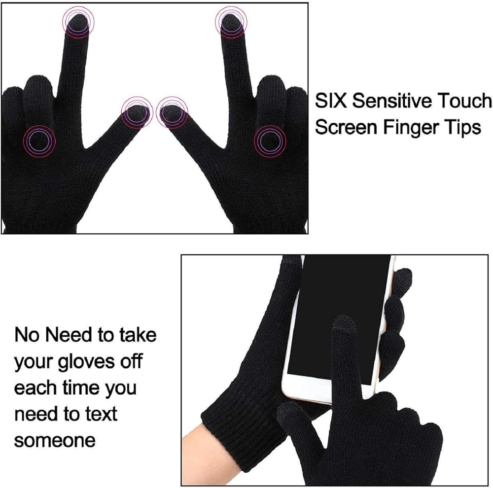• قفازات شاشة اللمس: تم تصميم القفازات الدافئة بوظيفة شاشة اللمس على جزء إصبع الإبهام والسبابة، مما يسمح لك باستخدام الهواتف بشكل مريح دون خلع القفازات في الشتاء، وهي عملية للاستخدام في الأنشطة الخارجية، قفازاتنا مصنوعة من مادة ناعمة ومتينة مع بطانة داخلية من الصوف الخفيف، قادرة على الحفاظ على دفء يديك في الأيام الباردة