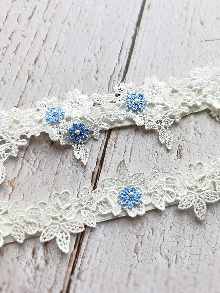 - هذا الرباط عبارة عن زهرة صغيرة مخيطة يدويًا ولؤلؤ صغير على الدانتيل، مجموعة رباط دانتيل رائعة وجميلة لحفلات الزفاف