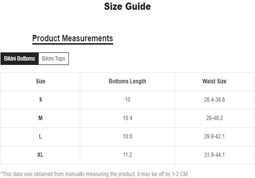 الجزء السفلي من البكيني: صغير: طول الجزء السفلي: 10.0 بوصة، مقاس الخصر: 26.4-38.6 بوصة