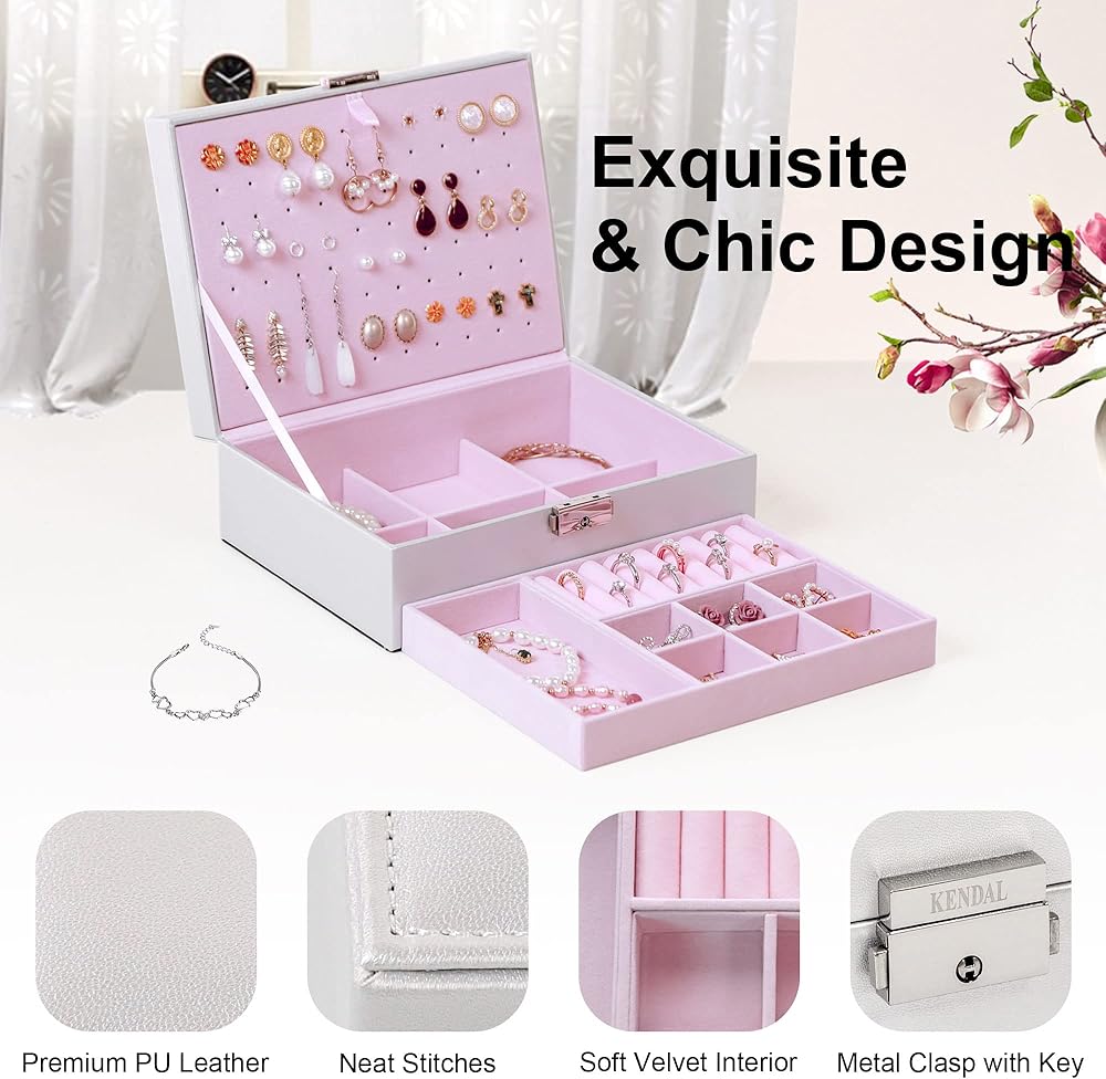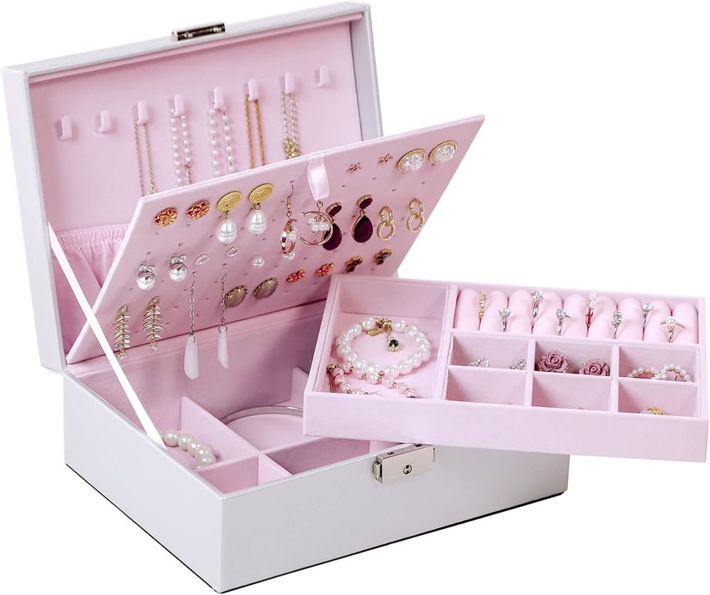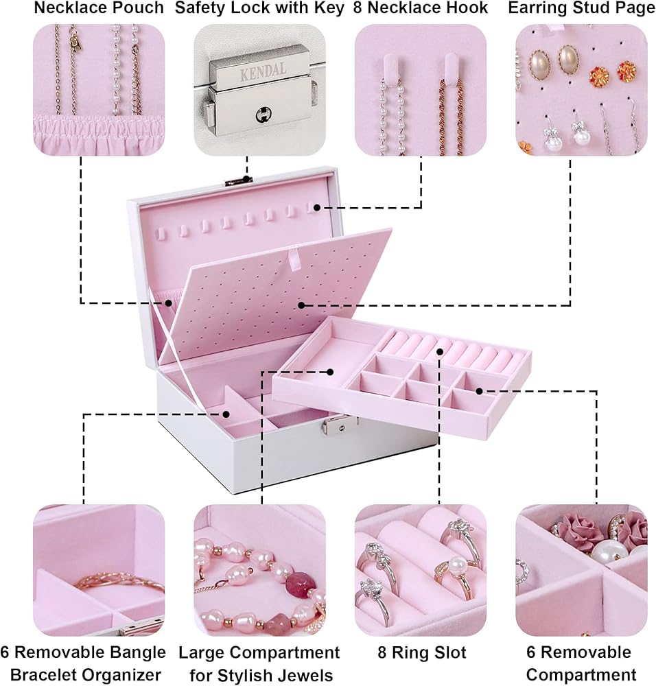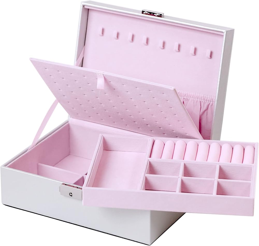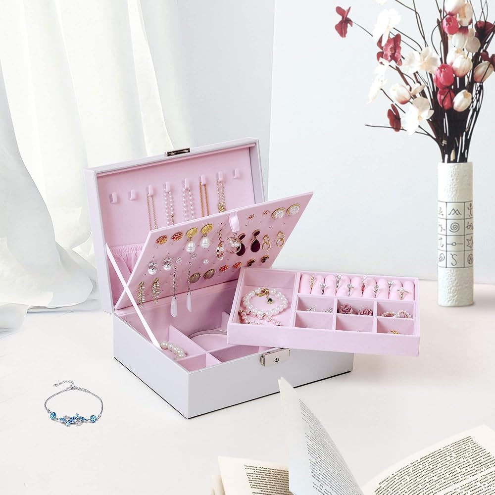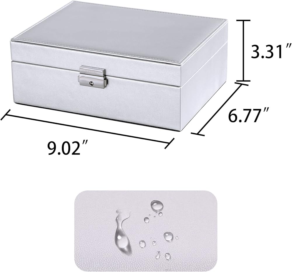 هدية مثالية لأي مناسبة: يوفر منظم حاوية المجوهرات هذا سعة واسعة وفعالة، ويسهل التنظيم ويعرض مجوهراتك بكل تألقها بأناقة. كصندوق مجوهرات آمن وأنيق قابل للقفل، فهو هدية مثالية لأعياد الميلاد والكريسماس وحفلات الزفاف وعيد الحب وعيد الأم وعيد الأب واحتفالات الذكرى السنوية، لإسعاد أحبائك.