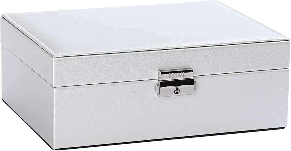 آمن وسهل الاستخدام: مزود بقفل معدني ومفتاح، يضمن صندوق تنظيم المجوهرات هذا أمان أغراضك الثمينة. التصميم الموفر للمساحة لصندوق المجوهرات المزود بقفل ومفتاح يجعل من السهل فتحه وإغلاقه مع الحفاظ على ممتلكاتك مخزنة بأمان.