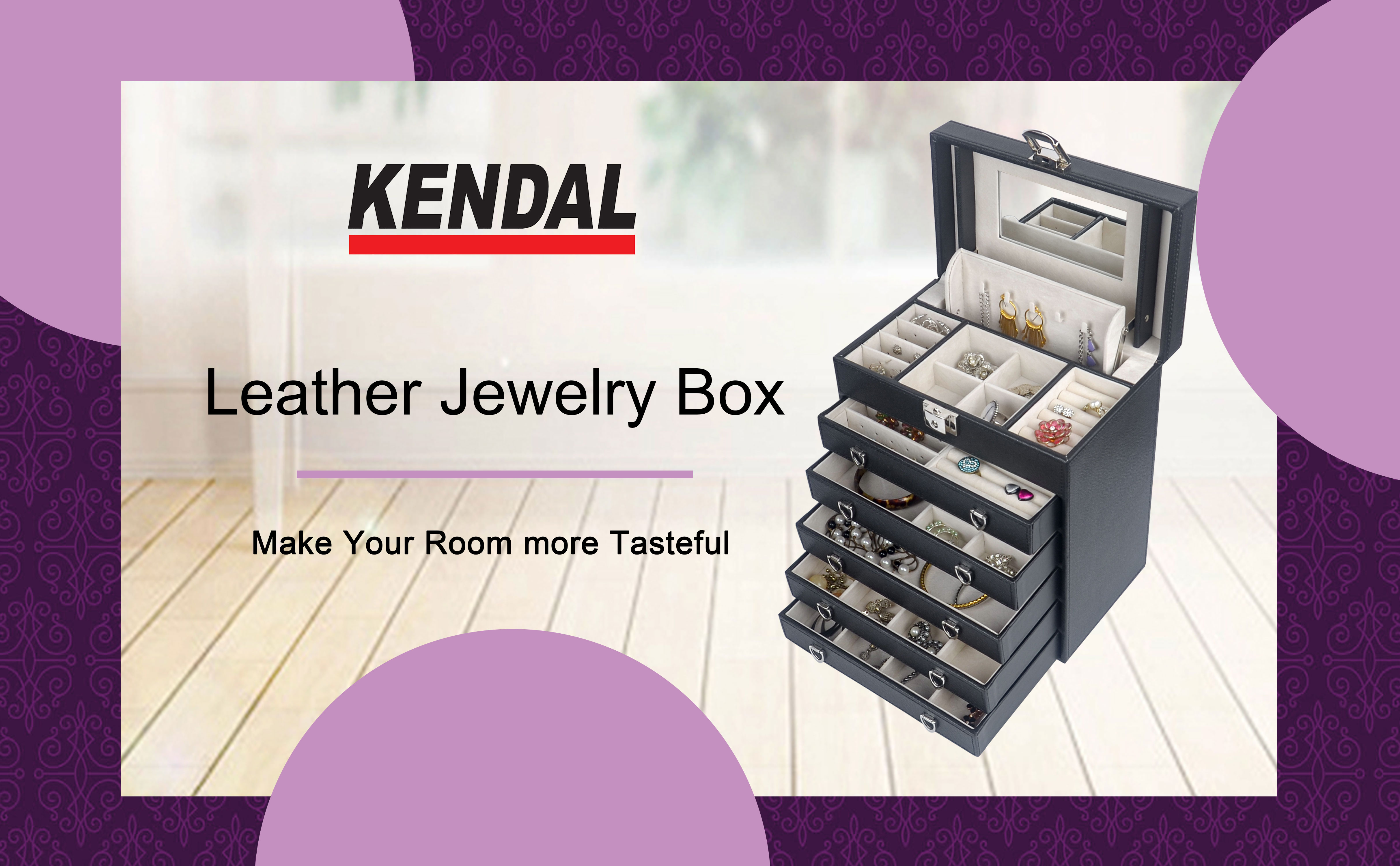صندوق مجوهرات من الجلد مكون من 6 طبقات للنساء من كيندال، منظم مجوهرات مع قفل للقلادة والخواتم والمجوهرات LJC09BK