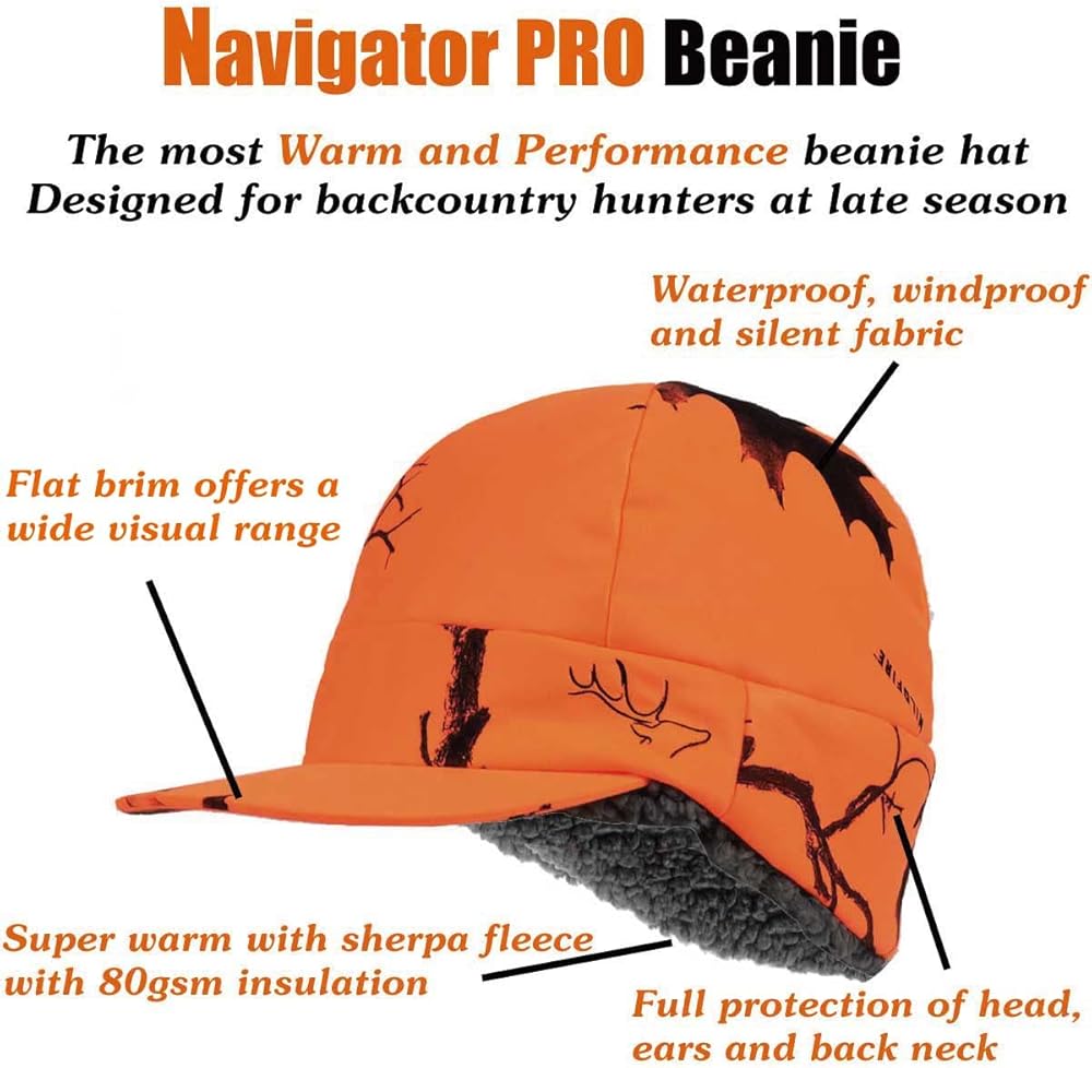سمع فائق الهدوء وبدون عائق - الصمت مهم جدًا عند الاقتراب من الغزلان أو على شجرة. تستخدم قبعة Navigator Pro Hunting الصوف الصامت كجزء خارجي من أجل الهدوء الفائق. يمكن أن يكون السمع أمرًا بالغ الأهمية لتحقيق النجاح، حيث تضمن اللوحة السفلية الهندسية السمع دون عائق