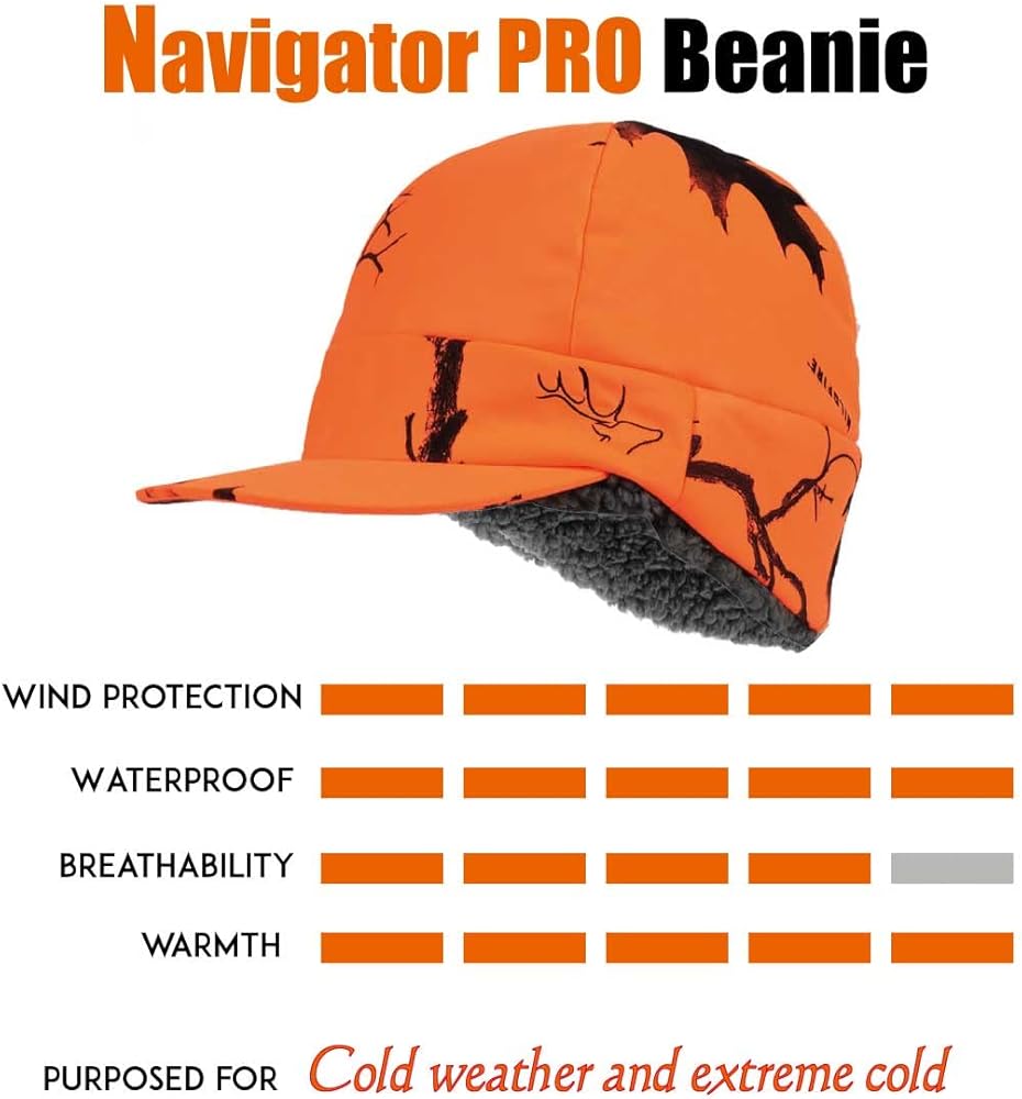 قبعة فائقة الأداء للطقس البارد - قبعة Navigator Pro Beanie مصممة للحفاظ على جفاف الصيادين وراحتهم في الطقس البارد والطقس البارد الشديد. إنه مقاوم للماء والرياح ودافئ للغاية ولا يزال قابلاً للتنفس. الطبقة الوسطى - غشاء ARCTIC TECH عالي المقاومة للماء (10000 مم) والتهوية (10000 جرام/م2). توفر الأنماط المموهة ثلاثية الأبعاد إخفاء فعال والبرتقالي اللامع ذو رؤية عالية للسلامة، اختر اللون المناسب أو النمط المموه لنشاط الصيد الخاص بك