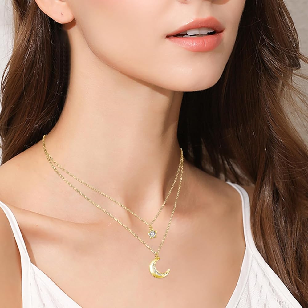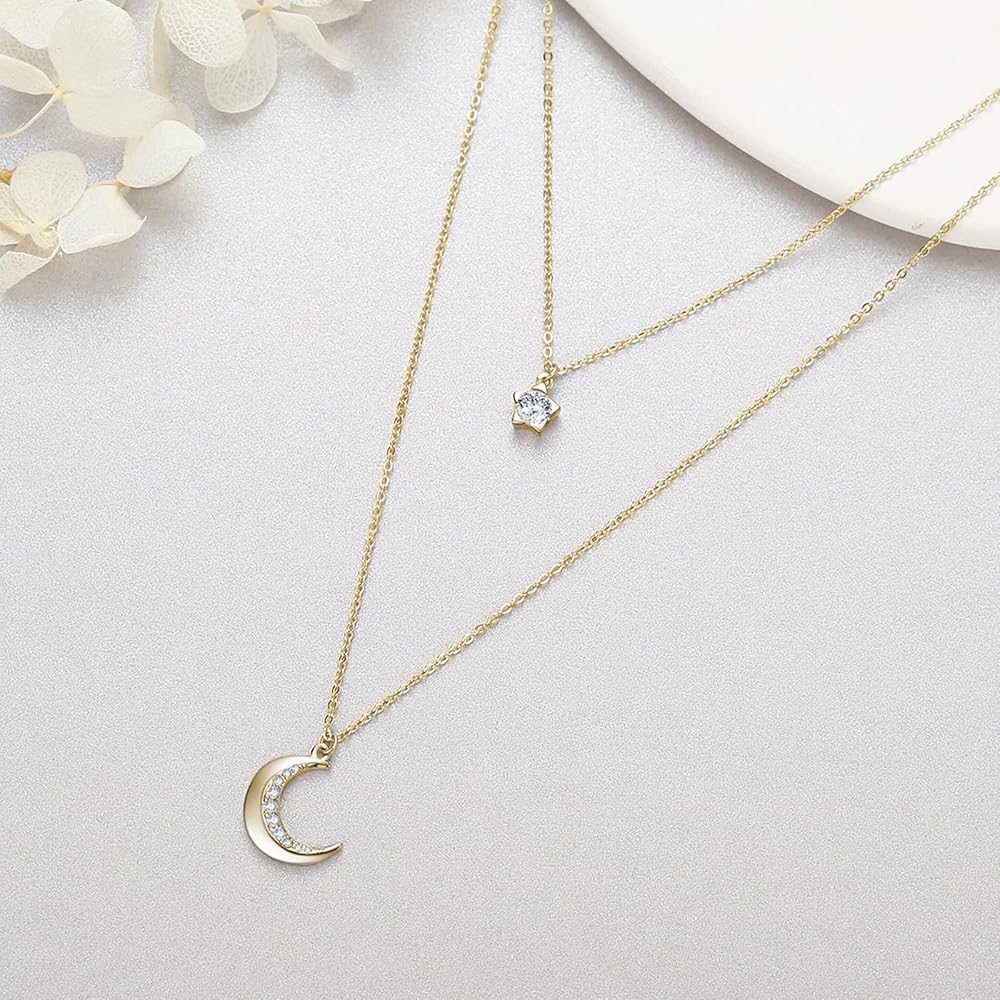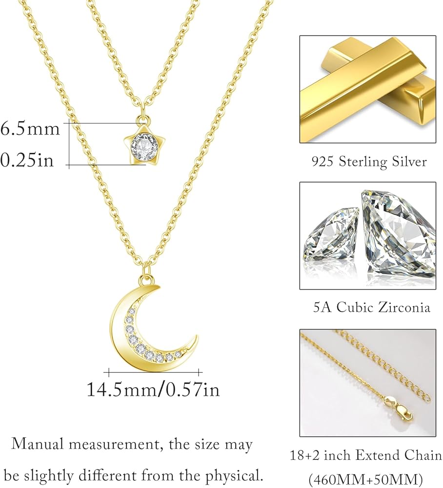 【حجم قلادة القمر قابل للتعديل】قلادة نجمة القمر: 15 مم، السلسلة: 18+2 سم مناسبة لجميع الأشخاص. مناسبة لمعظم النساء. سواء كان تي شيرت وجينز، أو ملابس عمل غير رسمية، يمكن مطابقتها جميعًا بشكل جيد. مناسب للنساء كهدية ويعبر عن حبك اللامتناهي لها.