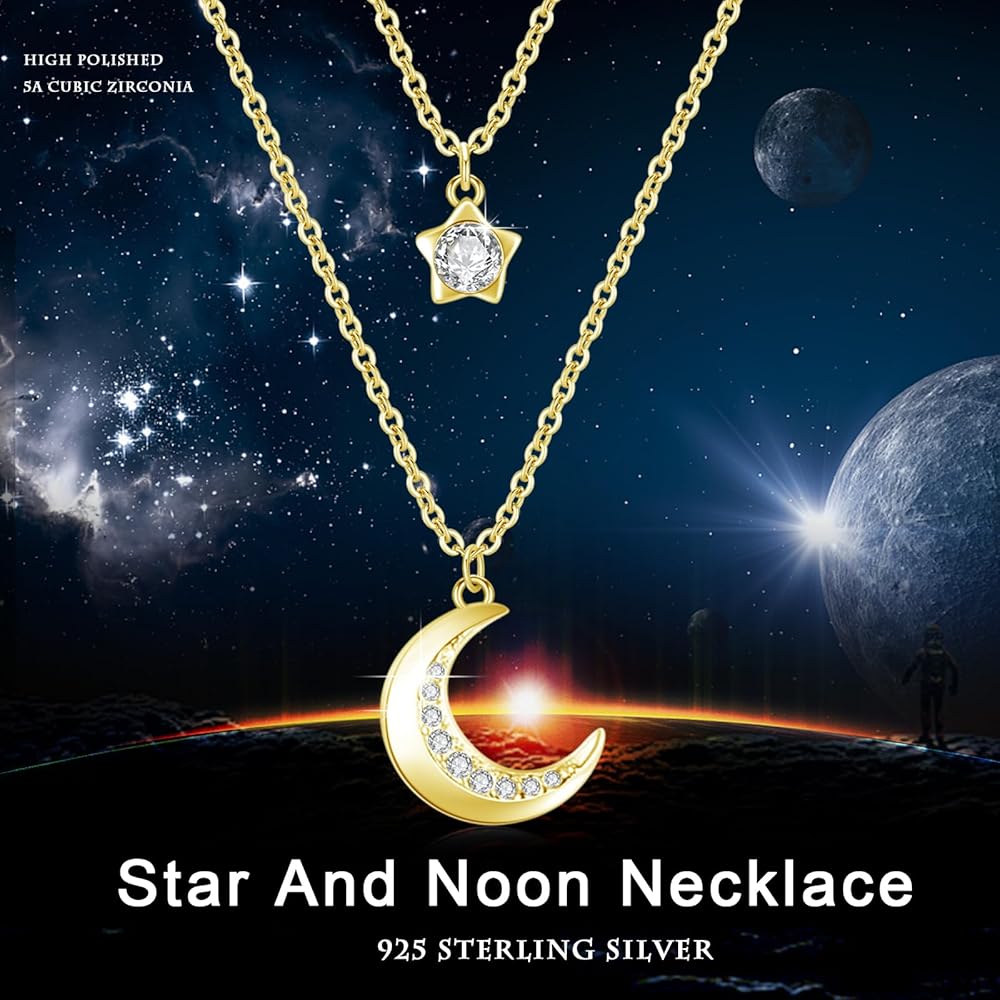 اسم المنتج: قلادة نجمة القمر من الفضة الإسترليني S925