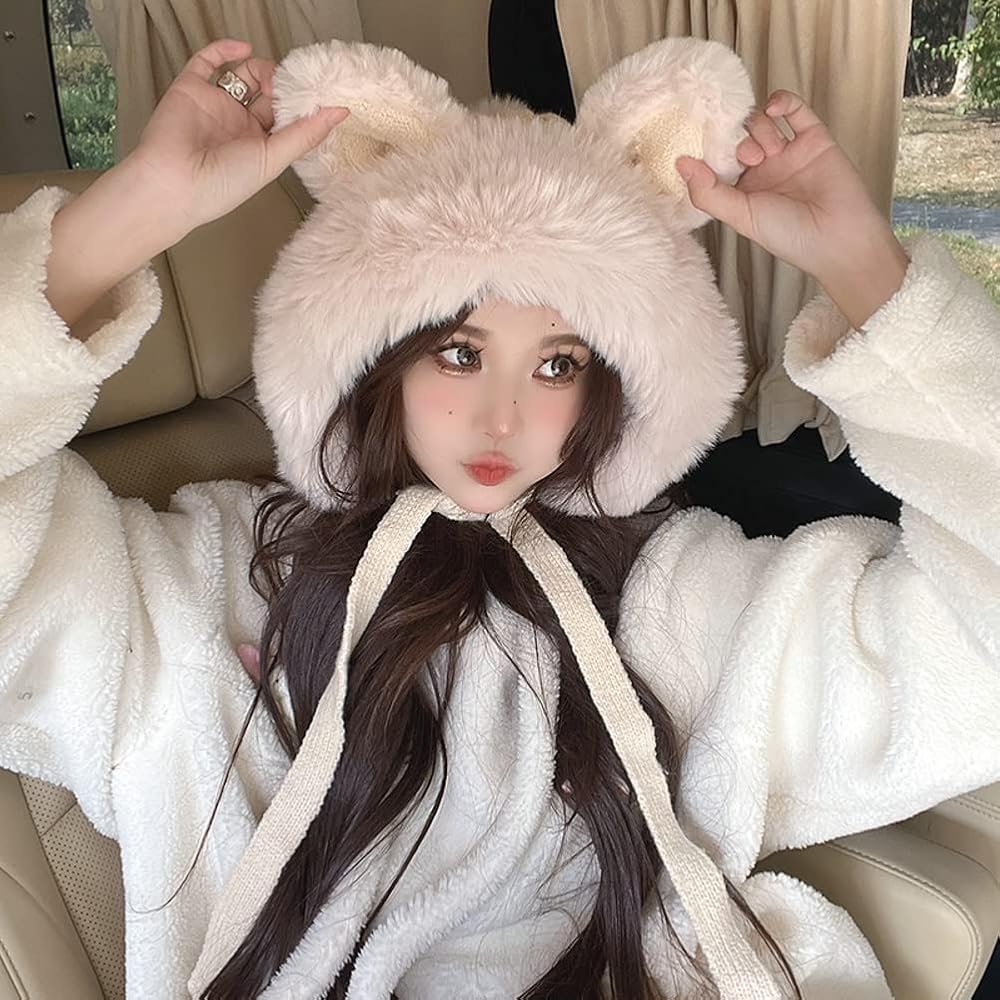 قبعة صغيرة نسائية لطيفة على شكل أذن قطة، قبعات ثلج للتزلج، قبعات جمجمة نسائية غامضة. تتميز قبعة الشتاء المنفوشة بلون موحد، وتصميم لطيف على شكل أذن قطة، ومبطنة بالصوف، ونمط كلاسيكي وأنيق وجميل للشتاء.