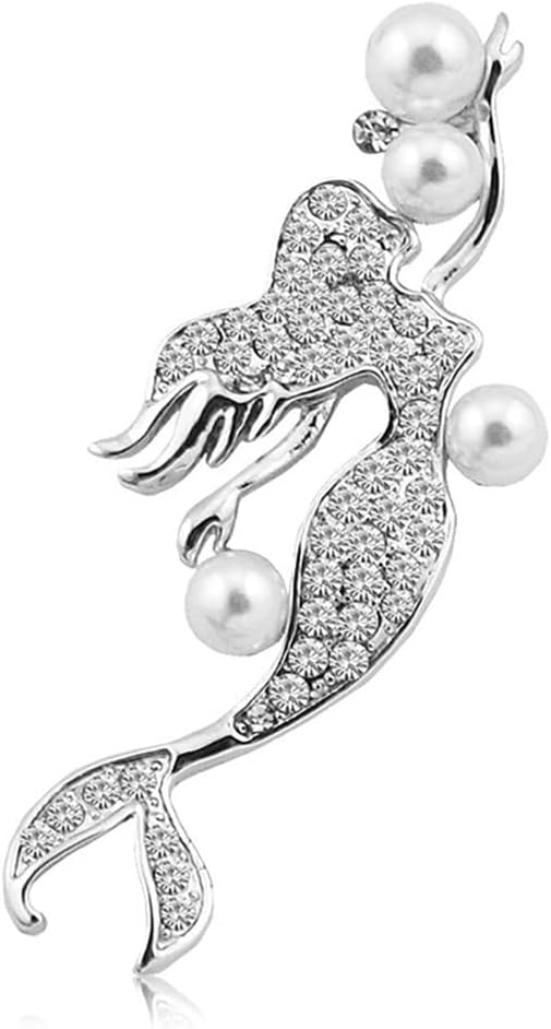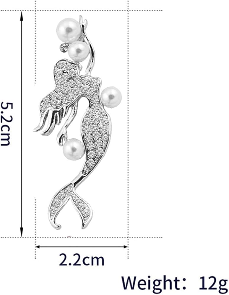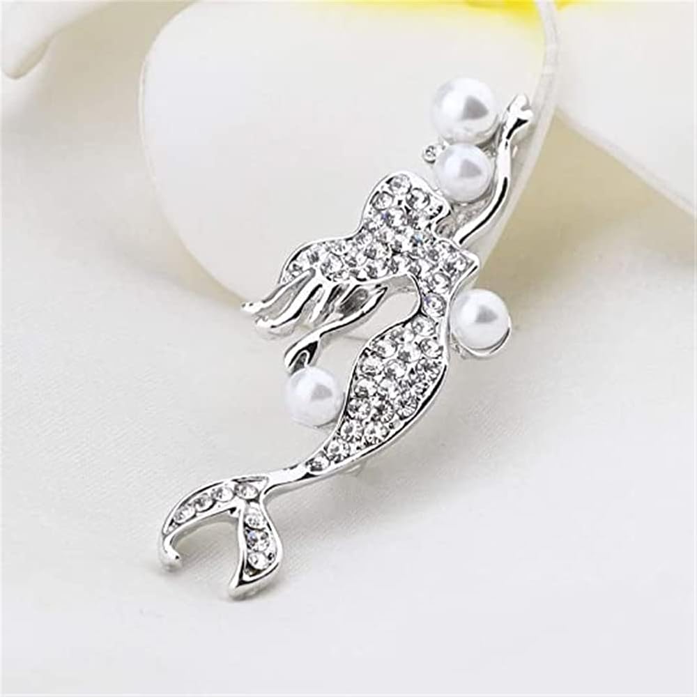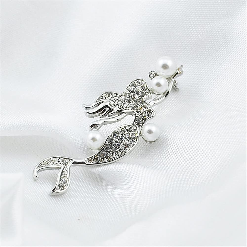 🎁💖 بروش حورية البحر - بروش حورية البحر الأنيق مع أحجار الراين الكريستالية الشفافة ولآلئ الفواكس، قاعدة معدنية من خليط معدني بلون ذهبي.