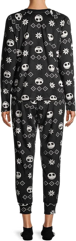 قميص بأكمام طويلة مطبوع عليه صورة Nightmare Before Christmas بالكامل وبنطلون متناسق يتميز بحزام خصر مطاطي