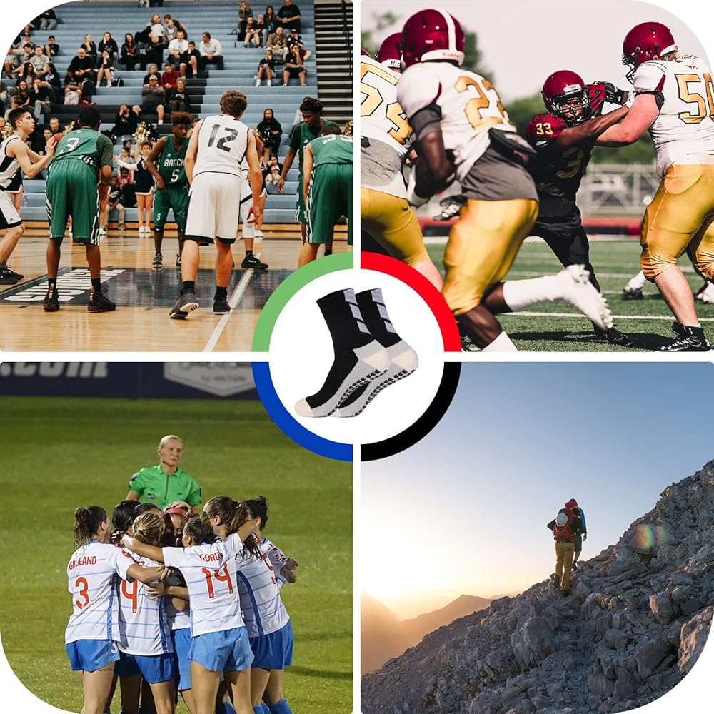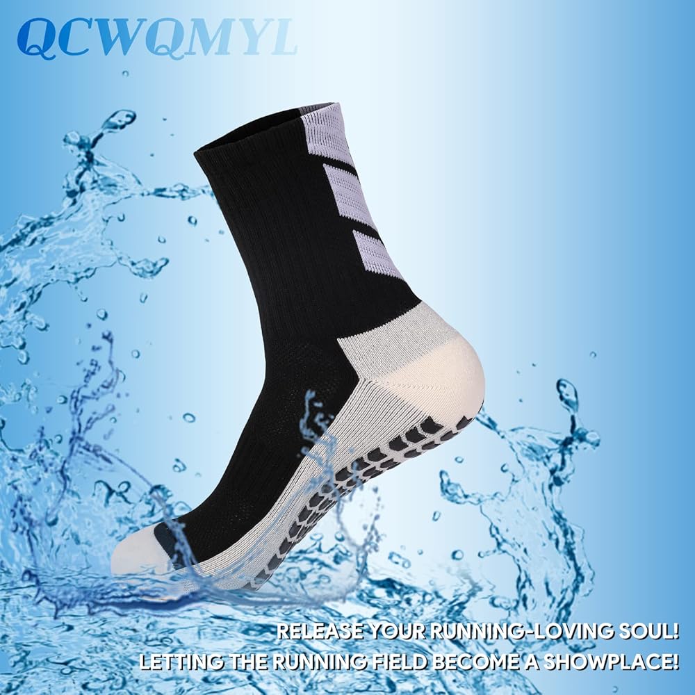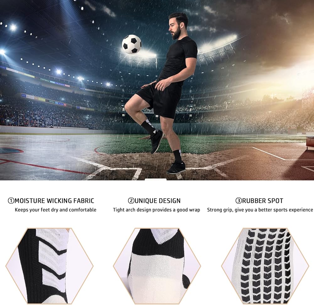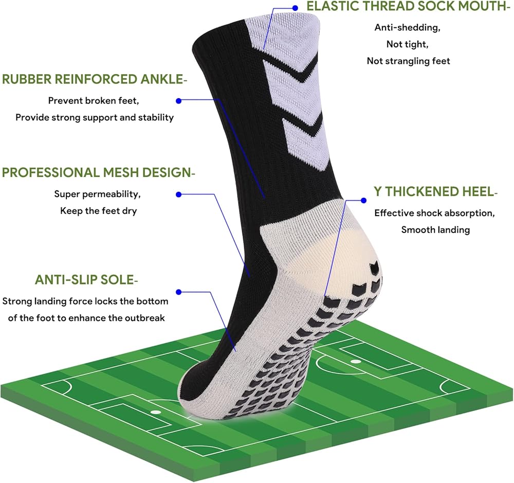 ⚽【جوارب من السيليكون غير القابلة للانزلاق للرجال】اختر جوارب QCWQMYL الرجالية للحفاظ على قدميك منتعشة ومرتاحة طوال اليوم. الجزء السفلي من هذه الجوارب الدائرية مجهز بجل السيليكا المضاد للانزلاق. يمكن لجوارب كرة القدم ذات الهيكل المخطط أن تثبت موضع الحذاء بشكل فعال، لضمان ملاءمة مريحة وتقليل الإصابة، وتقوية الكعب وأصابع القدم لتحسين المتانة.